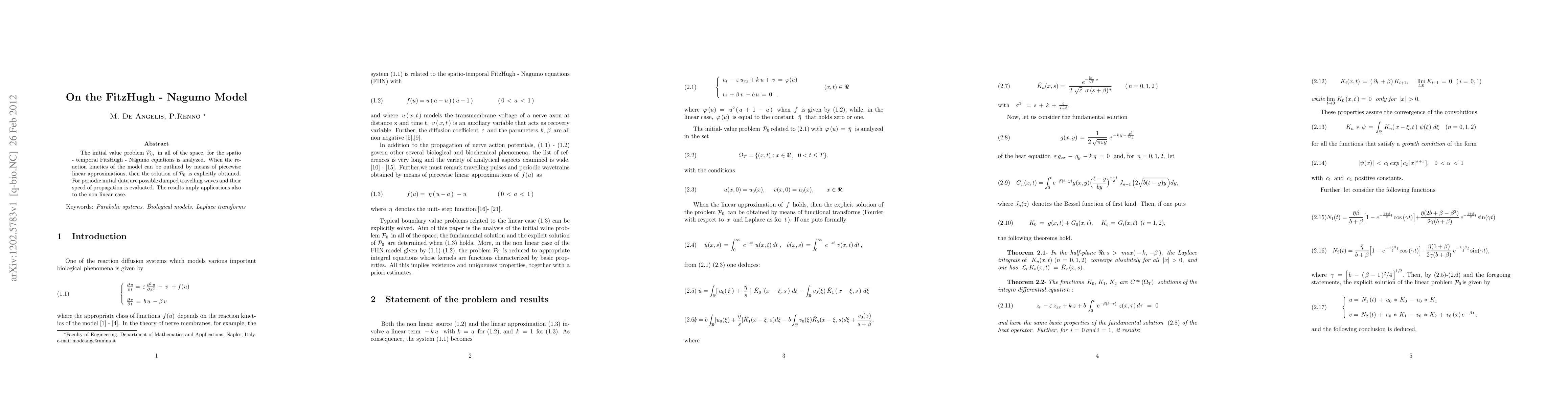 The FitzHugh-Nagumo model's initial value problem is analyzed, yielding explicit solutions for piecewise linear reaction kinetics. The study identifies damped traveling waves and evaluates their propagation speed, with implications for nonlinear cases.
