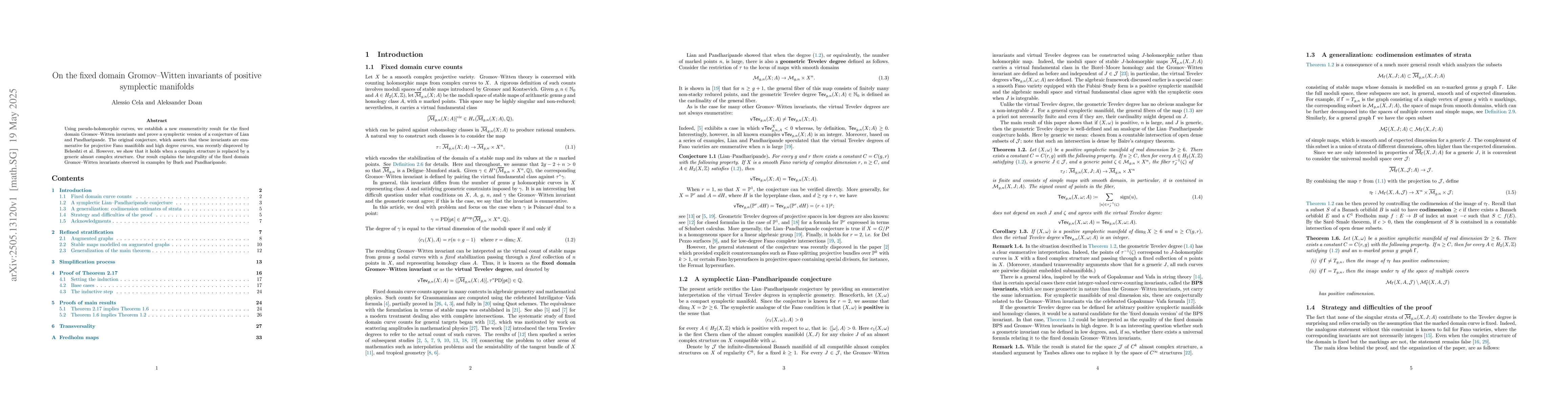 This work explains the observed integrality of fixed domain Gromov-Witten invariants, bridging a gap between projective Fano manifolds and general positive symplectic manifolds, thus contributing to our understanding of enumerative geometry.