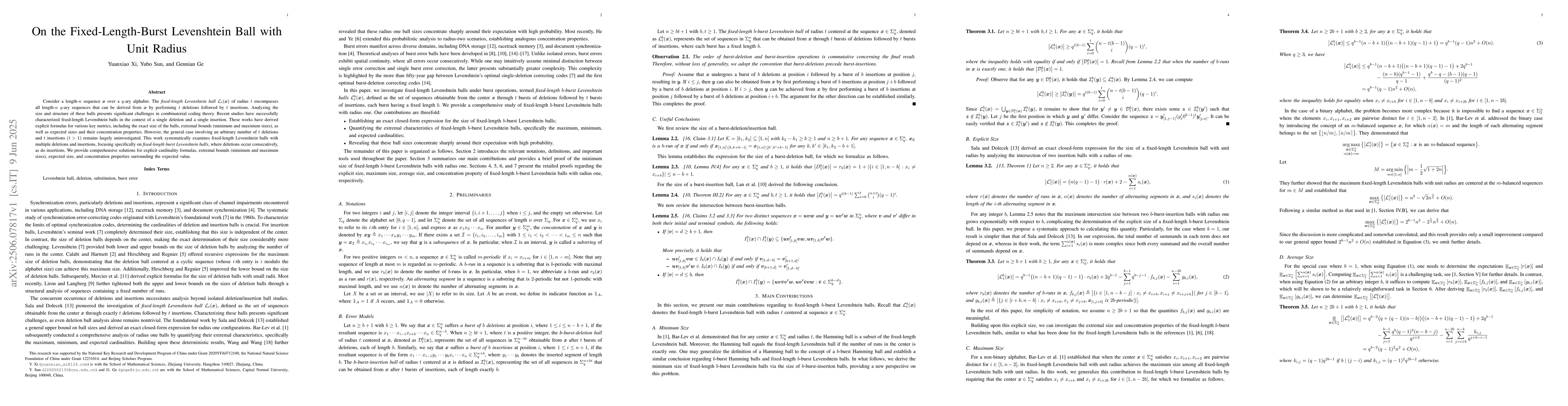 Researchers investigate fixed-length burst Levenshtein balls with multiple deletions and insertions, providing explicit formulas for cardinality and extremal bounds, and studying concentration properties.