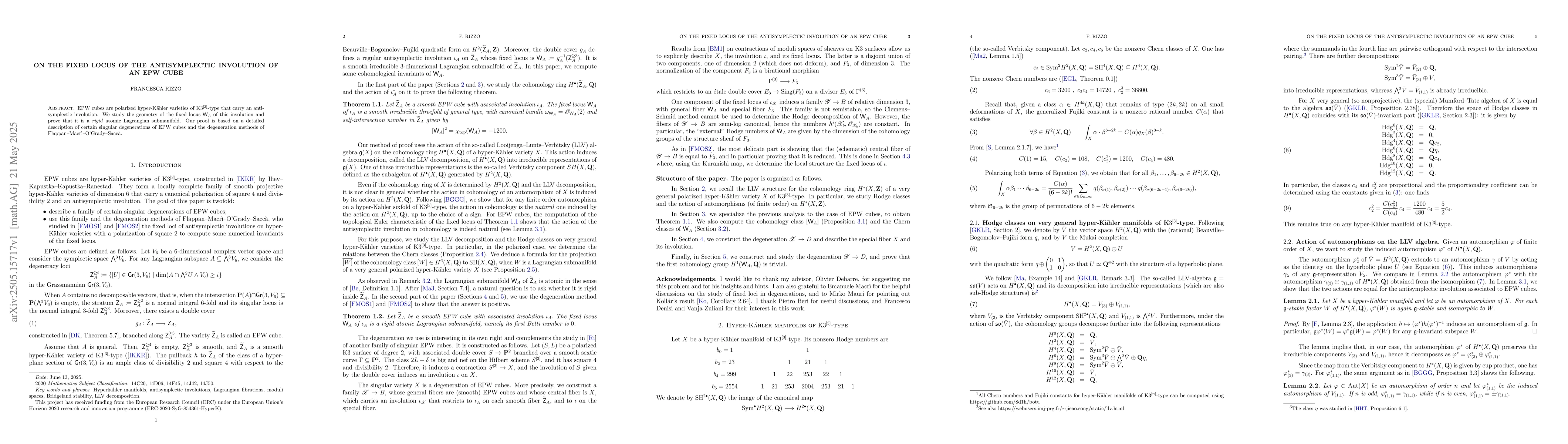 The paper presents a proof that the fixed locus of the antisymplectic involution on EPW cubes is a rigid atomic Lagrangian submanifold, utilizing singular degenerations and advanced degeneration techniques.