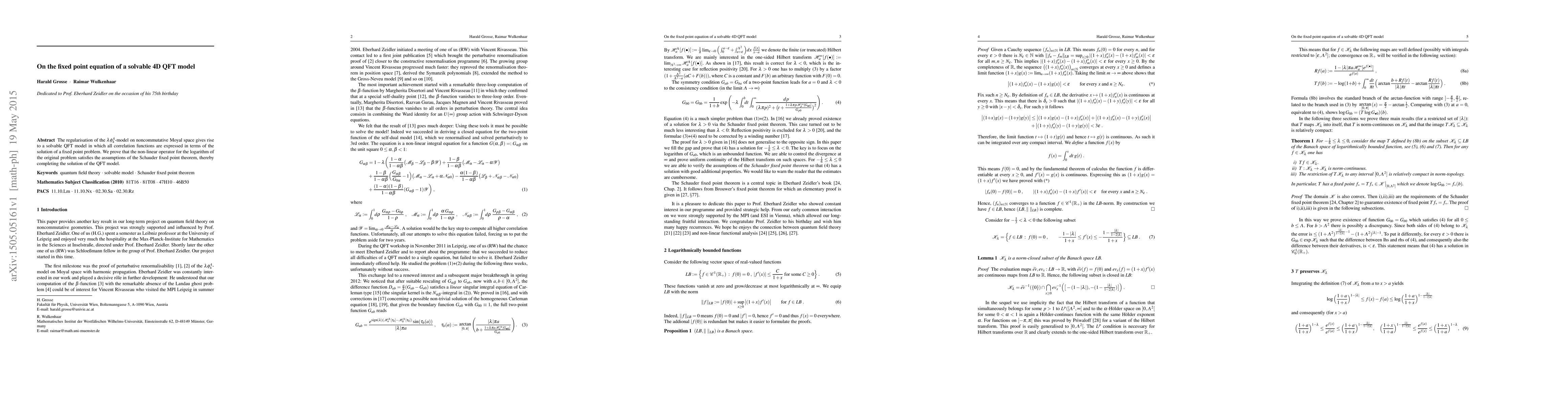 The regularisation of the $\lambda\phi^4_4$-model on noncommutative Moyal space gives rise to a solvable QFT model in which all correlation functions are expressed in terms of the solution of a fixed point problem. We prove that the non-linear operator for the logarithm of the original problem satisfies the assumptions of the Schauder fixed point theorem, thereby completing the solution of the QFT model.