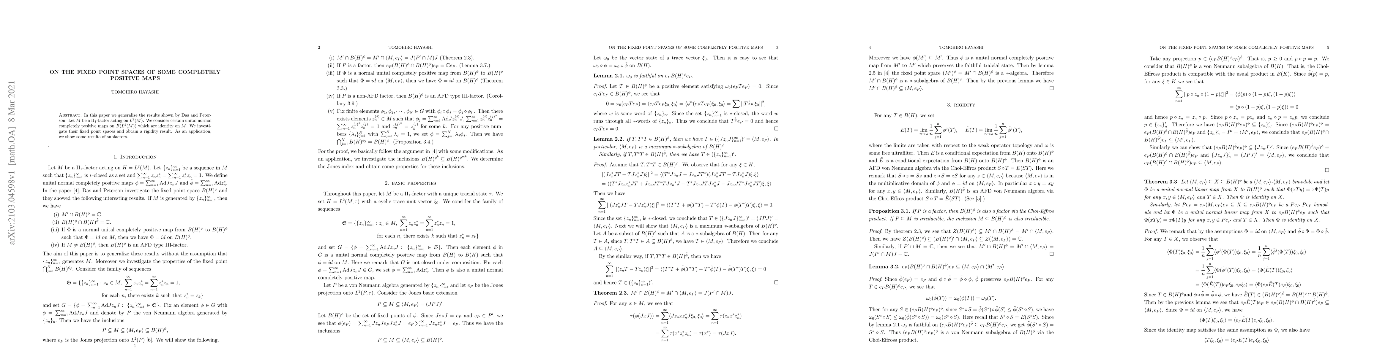 Researchers investigate fixed point spaces of unital normal completely positive maps on $B(L^2(M))$, showing rigidity results and applications to subfactors.