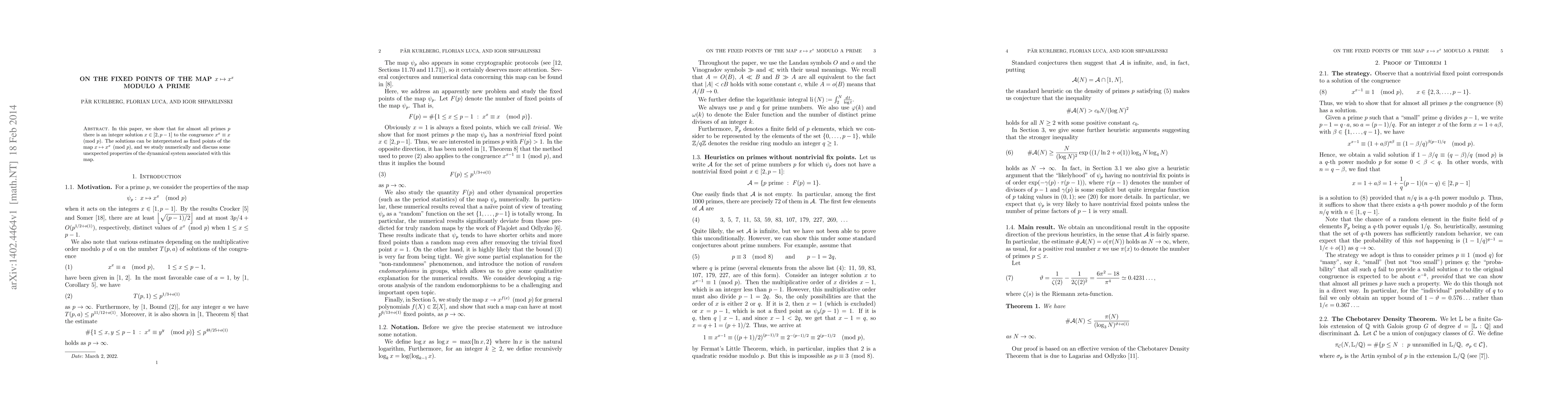 For most primes, researchers found a solution to x^x == x mod p in [2,p-1], making them fixed points of the map x -> x^x mod p. This discovery sheds light on unexpected properties of the associated dynamical system.