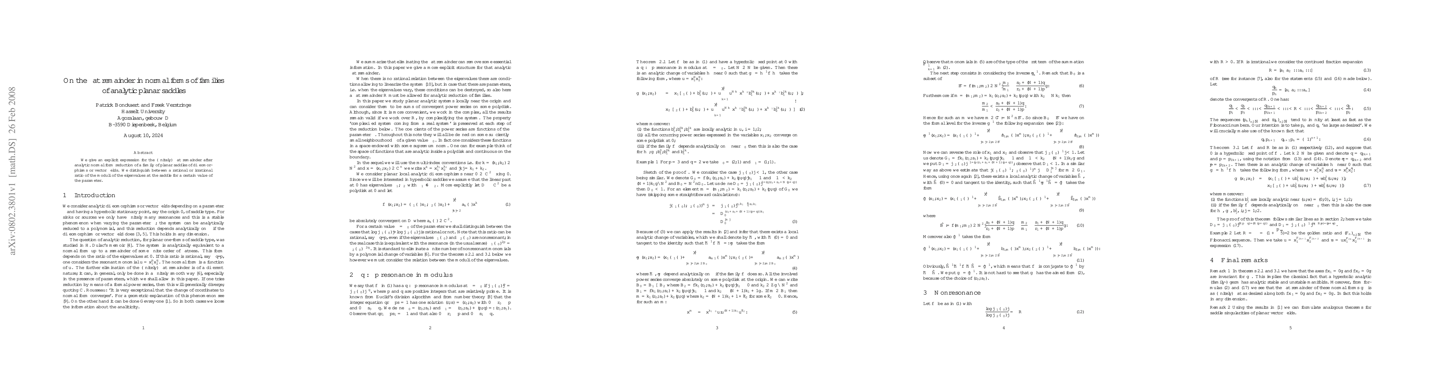Summary: This paper provides an explicit formula for the flat remainder in the normal form of planar saddles after analytic reduction, distinguishing between cases with rational and irrational eigenvalue moduli ratios.