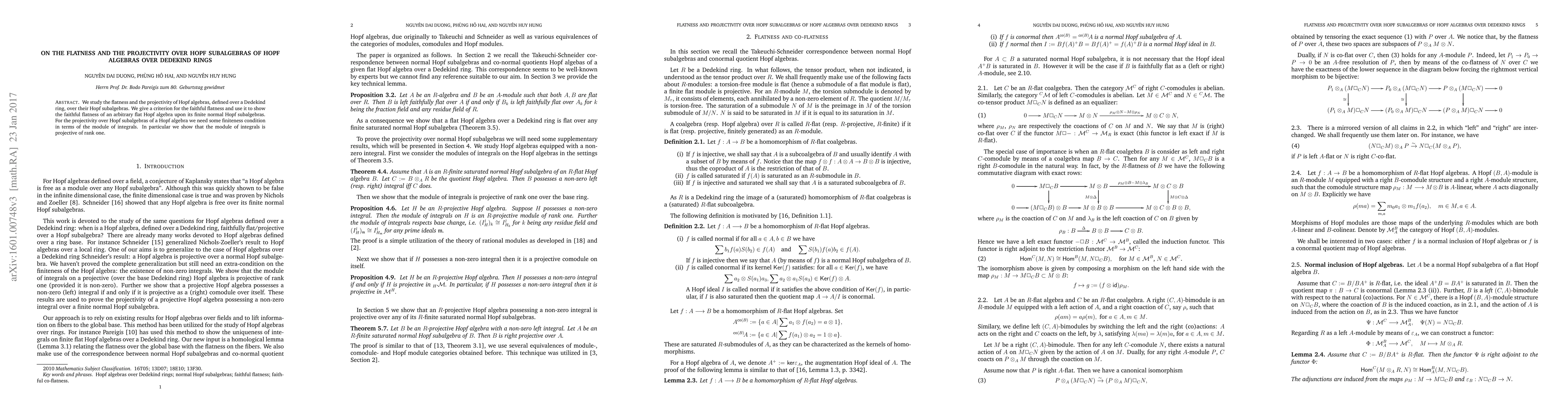 Summary: This research investigates the flatness and projectivity of Hopf algebras over Dedekind rings relative to their Hopf subalgebras, providing a criterion for faithful flatness and demonstrating its application in flat Hopf algebras. It also establishes that the module of integral for projective Hopf algebras has rank one under certain finiteness conditions.