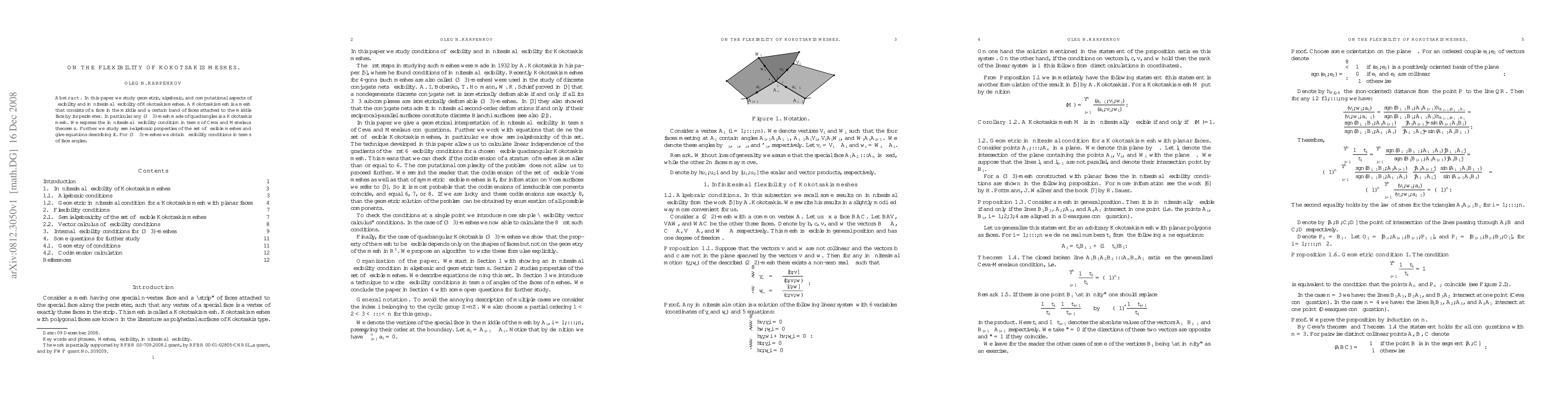 This paper studies the flexibility of Kokotsakis meshes, a specific type of mesh that can bend without breaking, and finds equations describing conditions for flexibility in terms of face angles.
