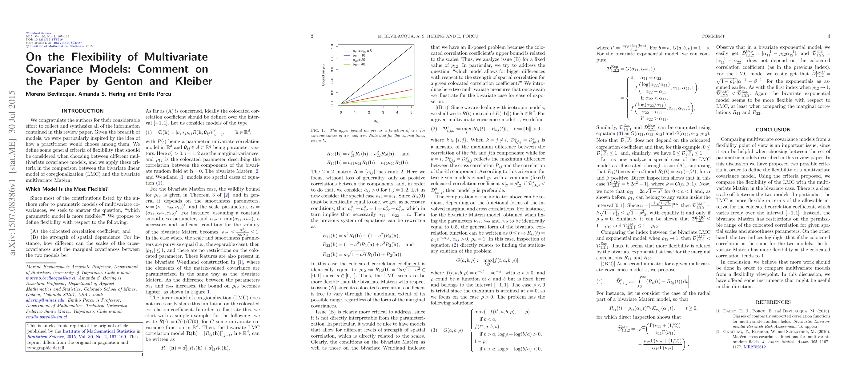 Discussion of "Cross-Covariance Functions for Multivariate Geostatistics" by Genton and Kleiber [arXiv:1507.08017].