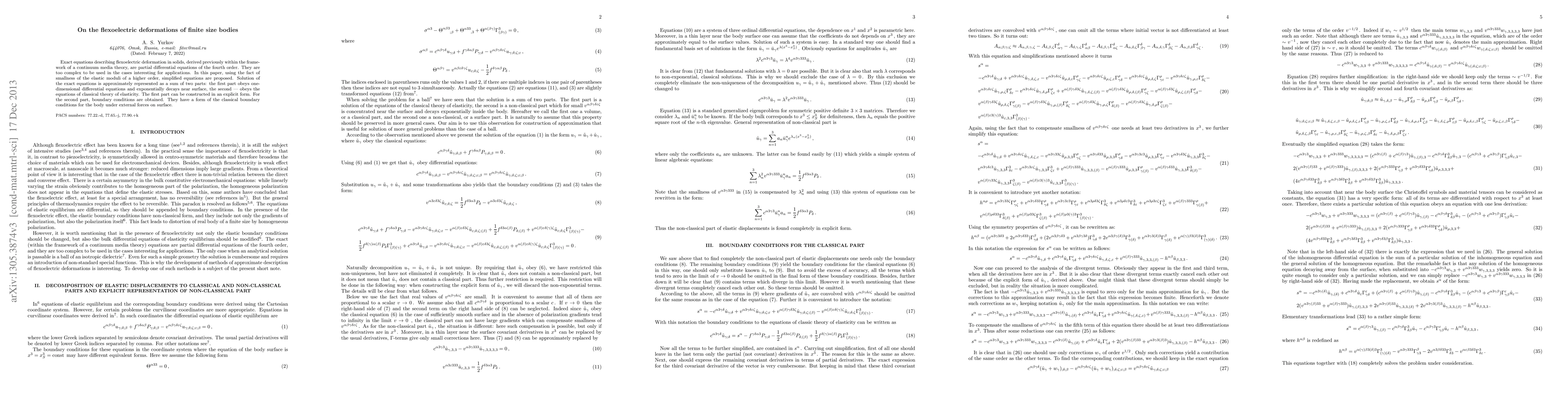 Researchers simplified complex equations describing flexoelectric deformation in solids to make them more applicable to real-world applications. They found that the deformation can be broken down into two parts: one obeying simple one-dimensional equations near the surface and the other following classical elasticity theory.