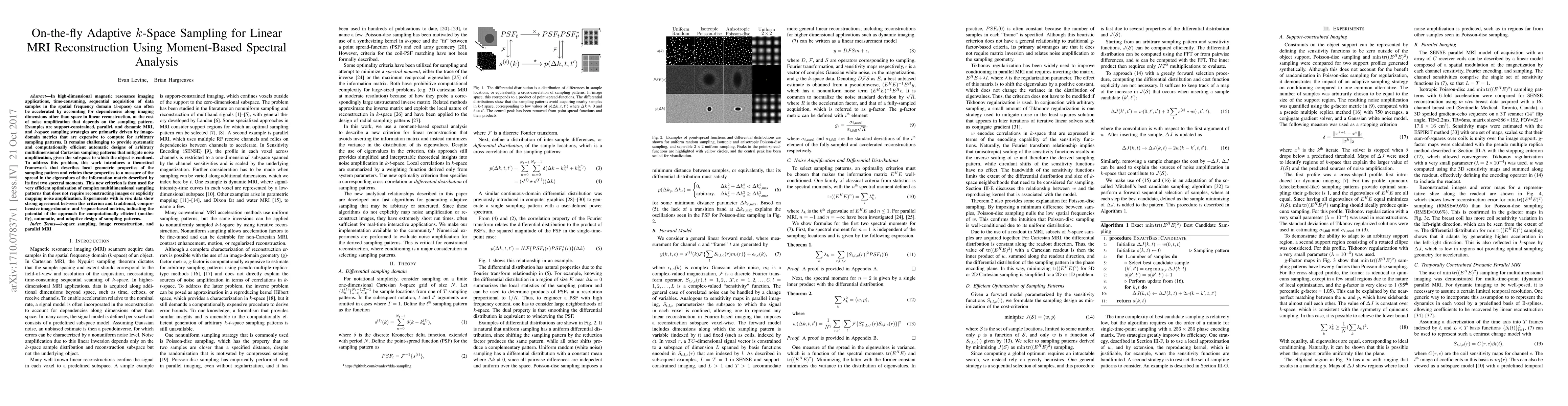 This paper introduces a new method for designing efficient MRI sampling patterns that balances image quality with noise amplification, using moment-based spectral analysis to optimize complex multidimensional patterns.