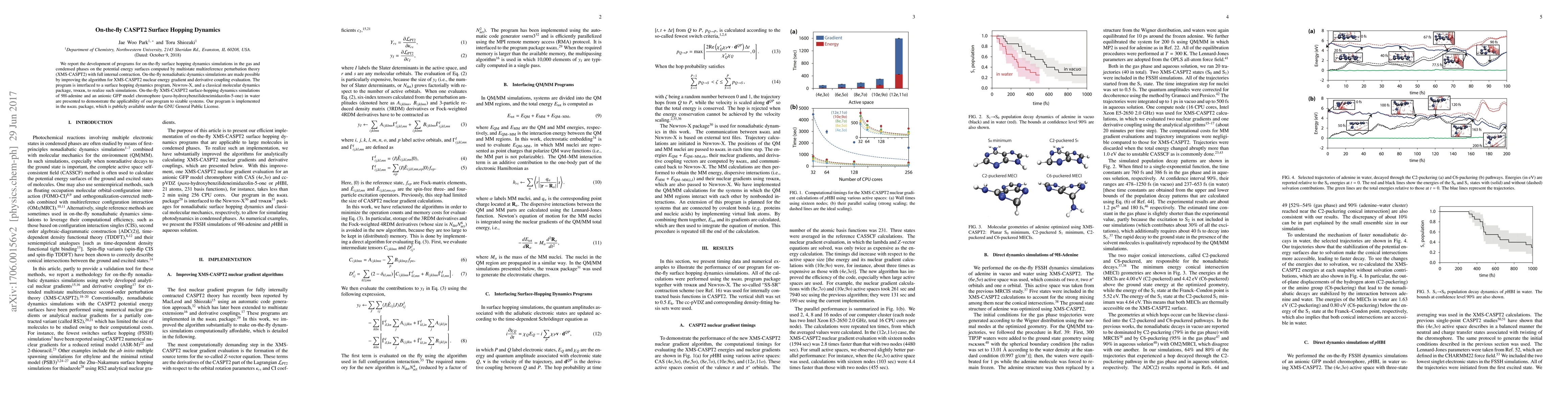 This paper introduces programs for on-the-fly surface hopping dynamics simulations using multistate multireference perturbation theory (XMS-CASPT2) potential energy surfaces, facilitated by improved nuclear energy gradient and derivative coupling evaluation algorithms. The developed software is demonstrated through simulations of 9H-adenine and a GFP model chromophore in water.