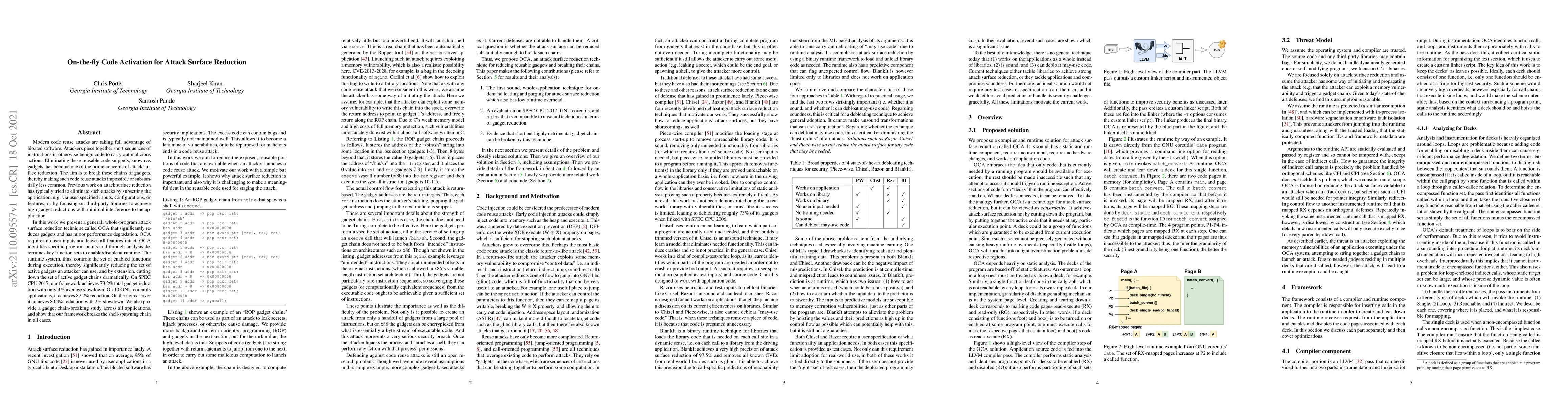 Modern code reuse attacks are taking full advantage of bloated software. Attackers piece together short sequences of instructions in otherwise benign code to carry out malicious actions. Eliminating these reusable code snippets, known as gadgets, has become one of the prime concerns of attack surface reduction. The aim is to break these chains of gadgets, thereby making such code reuse attacks impossible or substantially less common. Previous work on attack surface reduction has typically tried to eliminate such attacks by subsetting the application, e.g. via user-specified inputs, configurations, or features, or by focusing on third-party libraries to achieve high gadget reductions with minimal interference to the application. In this work we present a general, whole-program attack surface reduction technique called OCA that significantly reduces gadgets and has minor performance degradation. OCA requires no user inputs and leaves all features intact. OCA identifies specific program points and through analysis determines key function sets to enable/disable at runtime. The runtime system, thus, controls the set of enabled functions during execution, thereby significantly reducing the set of active gadgets an attacker can use, and by extension, cutting down the set of active gadget chains dramatically. On SPEC CPU 2017, our framework achieves 73.2% total gadget reduction with only 4% average slowdown. On 10 GNU coreutils applications, it achieves 87.2% reduction. On the nginx server it achieves 80.3% reduction with 2% slowdown. We also provide a gadget chain-breaking study across all applications, and show that our framework breaks the shell-spawning chain in all cases.