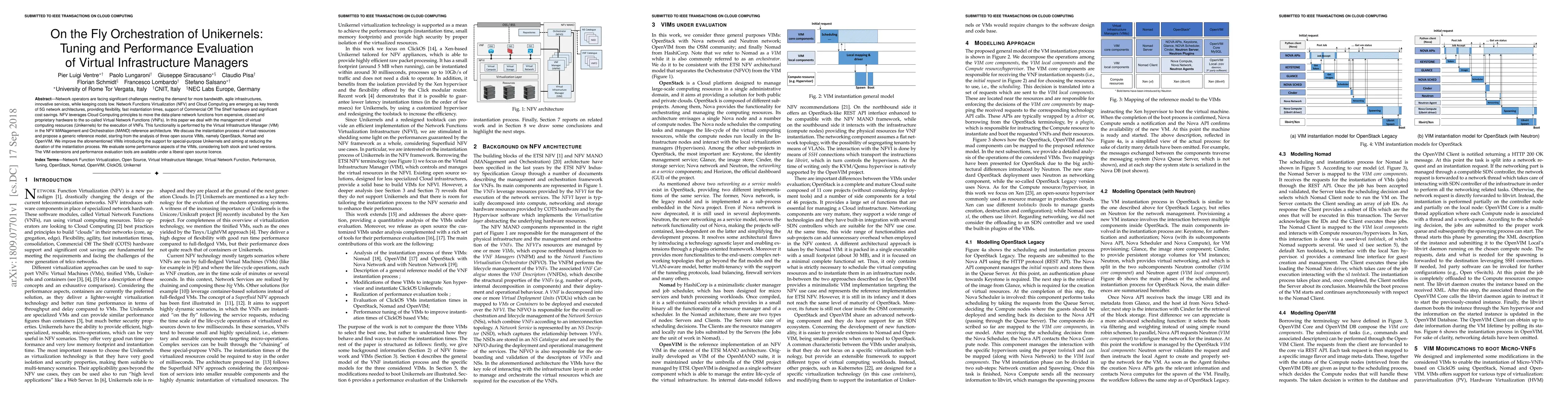 This paper explores the orchestration of Unikernels for Virtual Network Functions (VNFs) in Network Functions Virtualization (NFV) environments, analyzing and enhancing three open-source Virtual Infrastructure Managers (VIMs) to reduce instantiation times. The study evaluates performance improvements of the tuned VIMs compared to their stock versions.