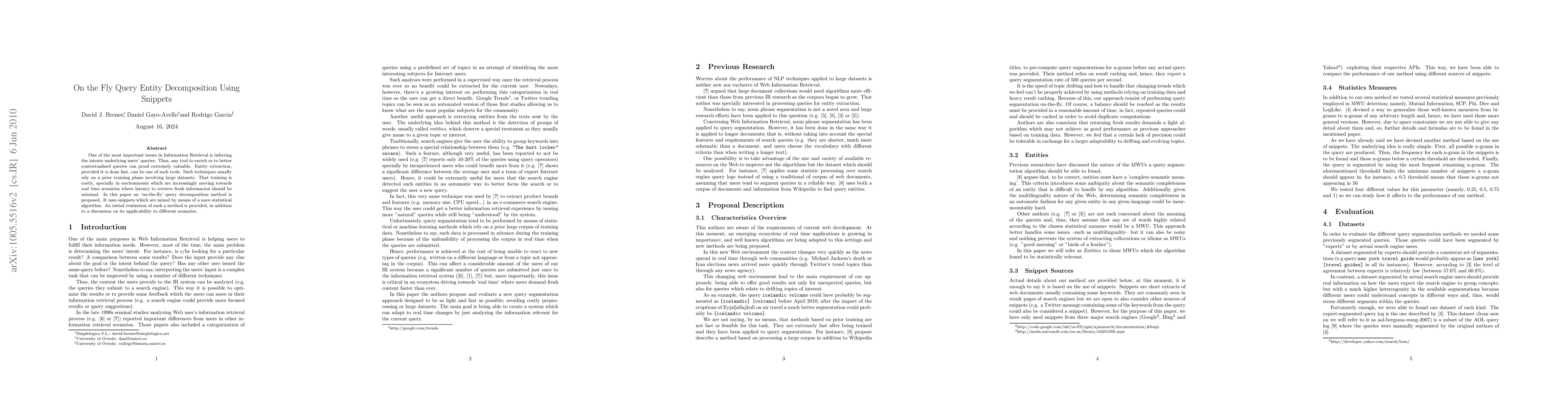 Researchers propose an 'on-the-fly' query decomposition method using snippets to efficiently extract entities from queries, aiming to reduce latency in real-time information retrieval scenarios.