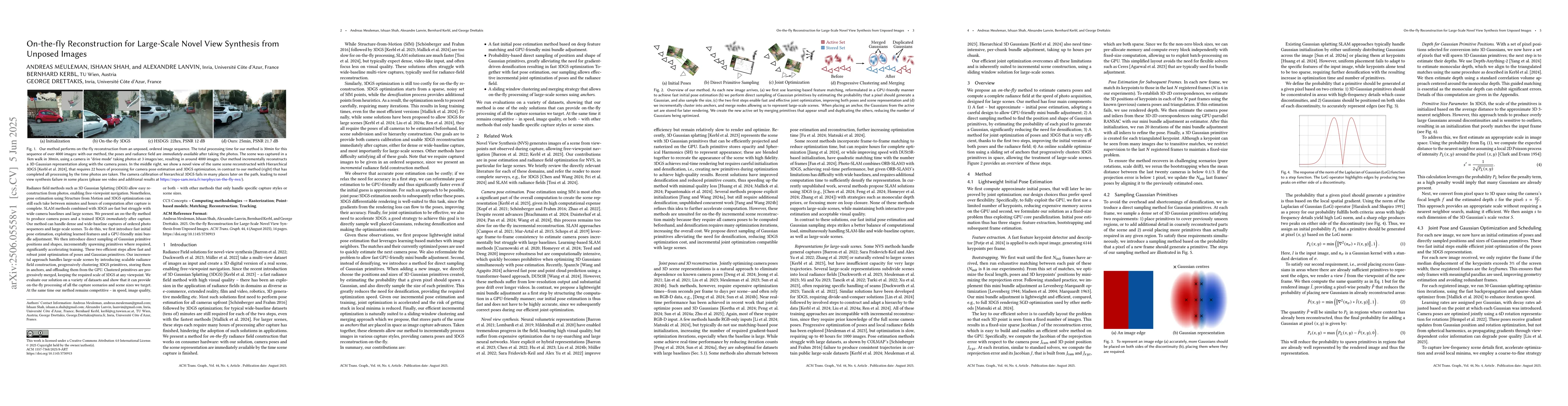 Radiance field methods such as 3D Gaussian Splatting (3DGS) allow easy reconstruction from photos, enabling free-viewpoint navigation. Nonetheless, pose estimation using Structure from Motion and 3DGS optimization can still each take between minutes and hours of computation after capture is complete. SLAM methods combined with 3DGS are fast but struggle with wide camera baselines and large scenes. We present an on-the-fly method to produce camera poses and a trained 3DGS immediately after capture. Our method can handle dense and wide-baseline captures of ordered photo sequences and large-scale scenes. To do this, we first introduce fast initial pose estimation, exploiting learned features and a GPU-friendly mini bundle adjustment. We then introduce direct sampling of Gaussian primitive positions and shapes, incrementally spawning primitives where required, significantly accelerating training. These two efficient steps allow fast and robust joint optimization of poses and Gaussian primitives. Our incremental approach handles large-scale scenes by introducing scalable radiance field construction, progressively clustering 3DGS primitives, storing them in anchors, and offloading them from the GPU. Clustered primitives are progressively merged, keeping the required scale of 3DGS at any viewpoint. We evaluate our solution on a variety of datasets and show that our solution can provide on-the-fly processing of all the capture scenarios and scene sizes we target while remaining competitive with other methods that only handle specific capture styles or scene sizes in speed, image quality, or both.