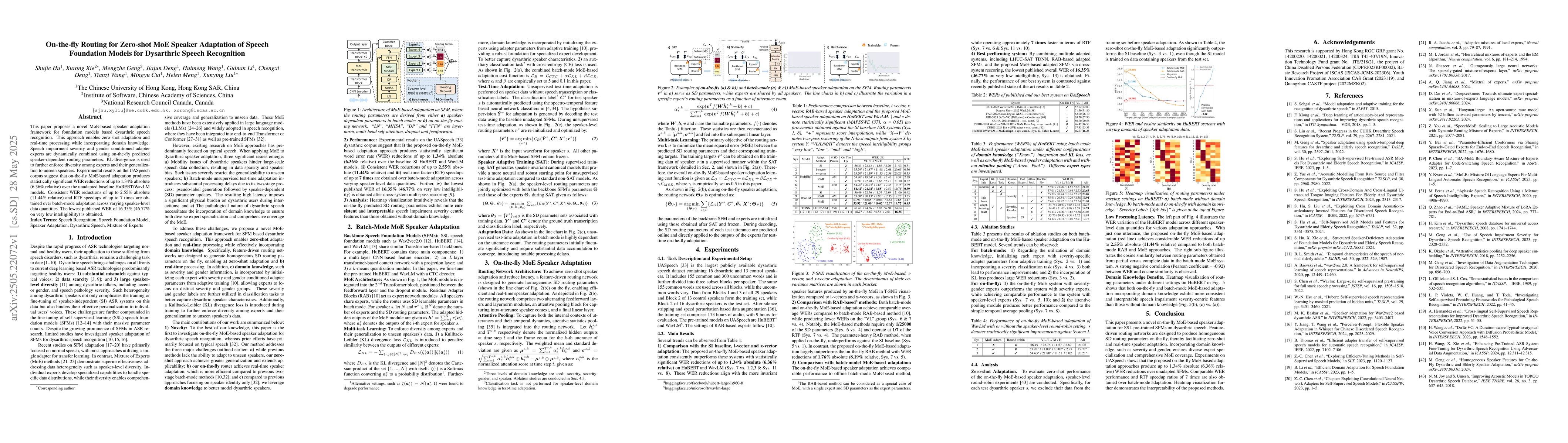 The paper proposes an MoE-based speaker adaptation framework for foundation models in dysarthric speech recognition, enabling zero-shot adaptation and real-time processing via dynamic combination of speech impairment severity and gender conditioned adapter experts using on-the-fly routing parameters.