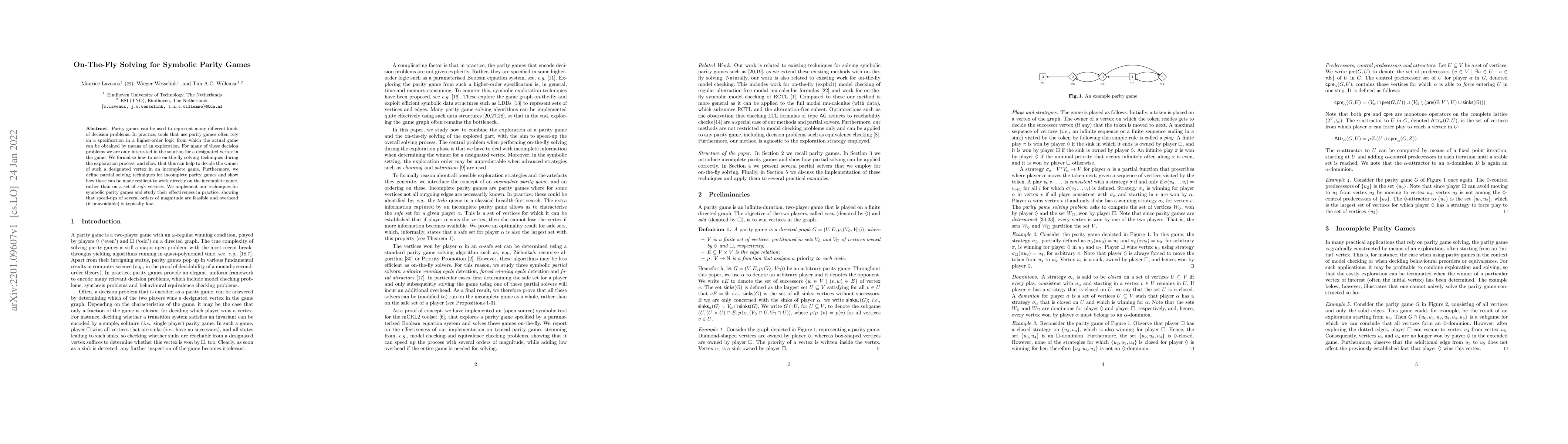 This paper proposes on-the-fly solving techniques for symbolic parity games during exploration, enabling efficient determination of the winner for designated vertices in incomplete games. It also introduces resilient partial solving methods for incomplete games, demonstrating significant speed-ups in practical implementations.
