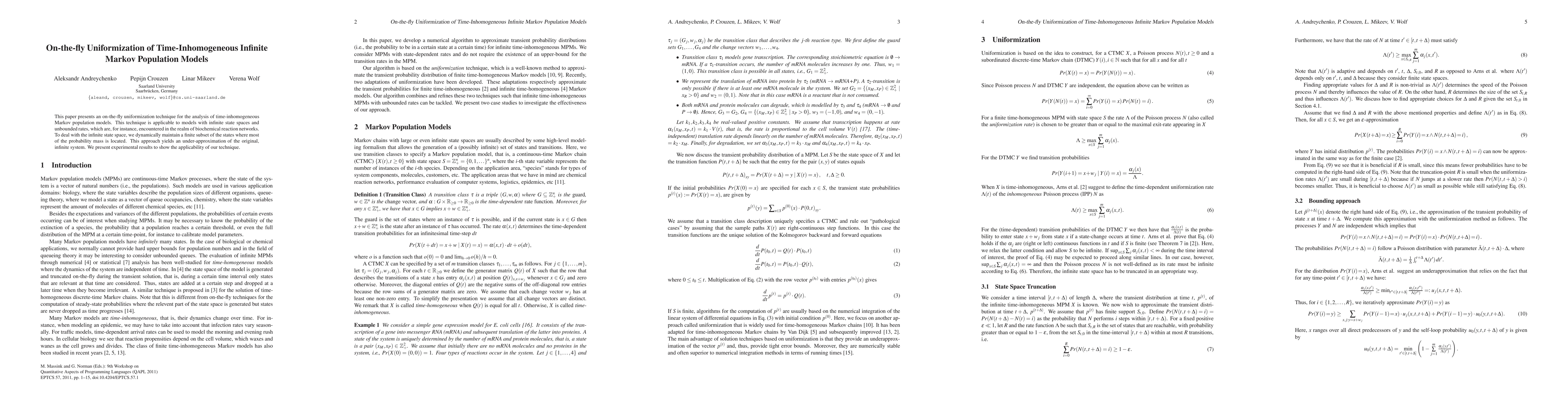 This paper presents an on-the-fly uniformization technique for the analysis of time-inhomogeneous Markov population models. This technique is applicable to models with infinite state spaces and unbounded rates, which are, for instance, encountered in the realm of biochemical reaction networks. To deal with the infinite state space, we dynamically maintain a finite subset of the states where most of the probability mass is located. This approach yields an underapproximation of the original, infinite system. We present experimental results to show the applicability of our technique.