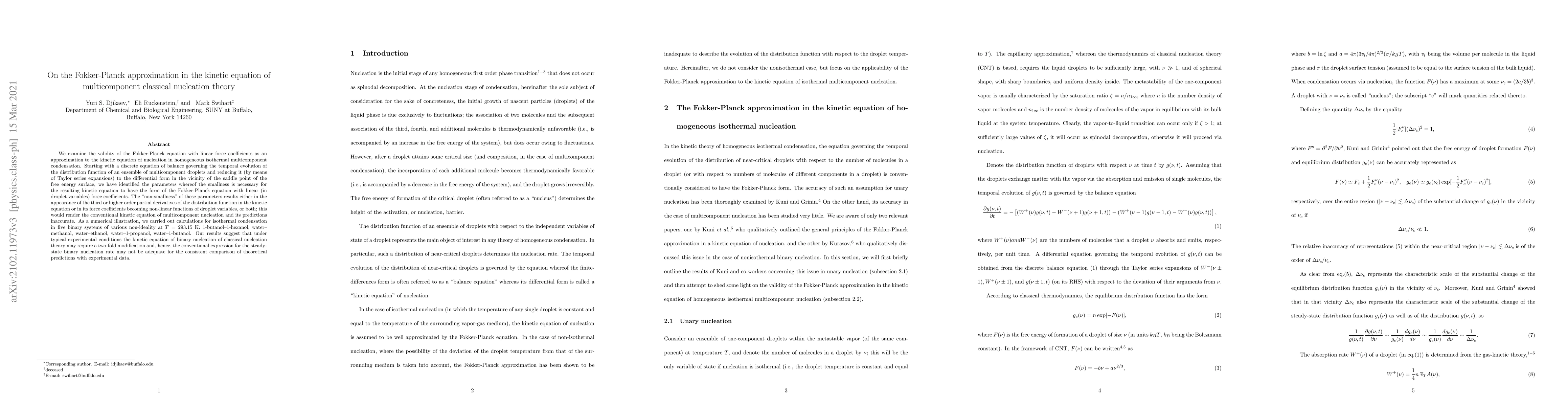 This paper investigates the applicability of the Fokker-Planck equation as an approximation for the kinetic equation in multicomponent classical nucleation theory, identifying conditions under which the approximation holds. Numerical results for five binary systems suggest that conventional expressions for nucleation rates may need modification for accurate comparisons with experimental data.