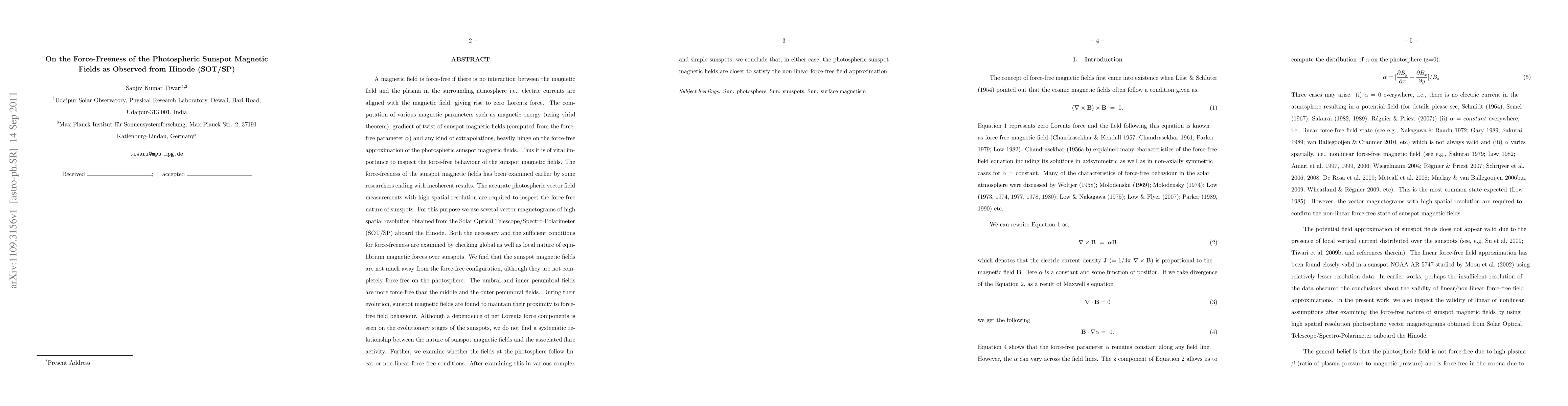 This paper investigates the force-freeness of sunspot magnetic fields using high-resolution vector magnetograms from Hinode's SOT/SP. The study finds that while sunspot fields are not completely force-free, they maintain a close approximation to a force-free configuration, with umbral and inner penumbral regions exhibiting more force-free behavior than outer regions.