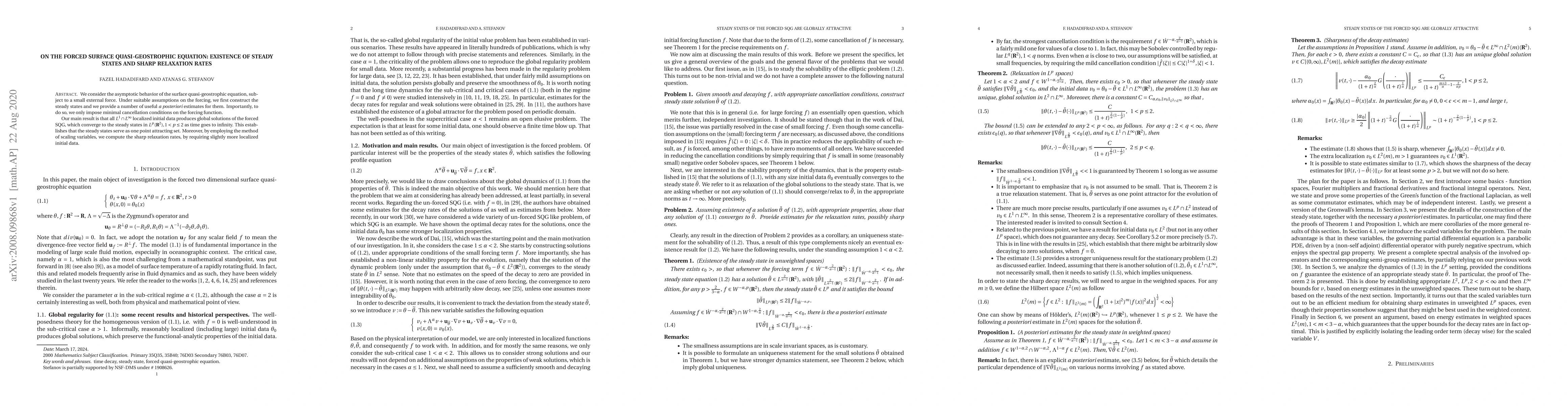 This paper investigates the asymptotic behavior of the forced surface quasi-geostrophic equation, constructing steady states under minimal cancellation conditions on the forcing. It demonstrates that localized initial data converges to these steady states, establishing them as an attracting set, and computes sharp relaxation rates using scaling variables.