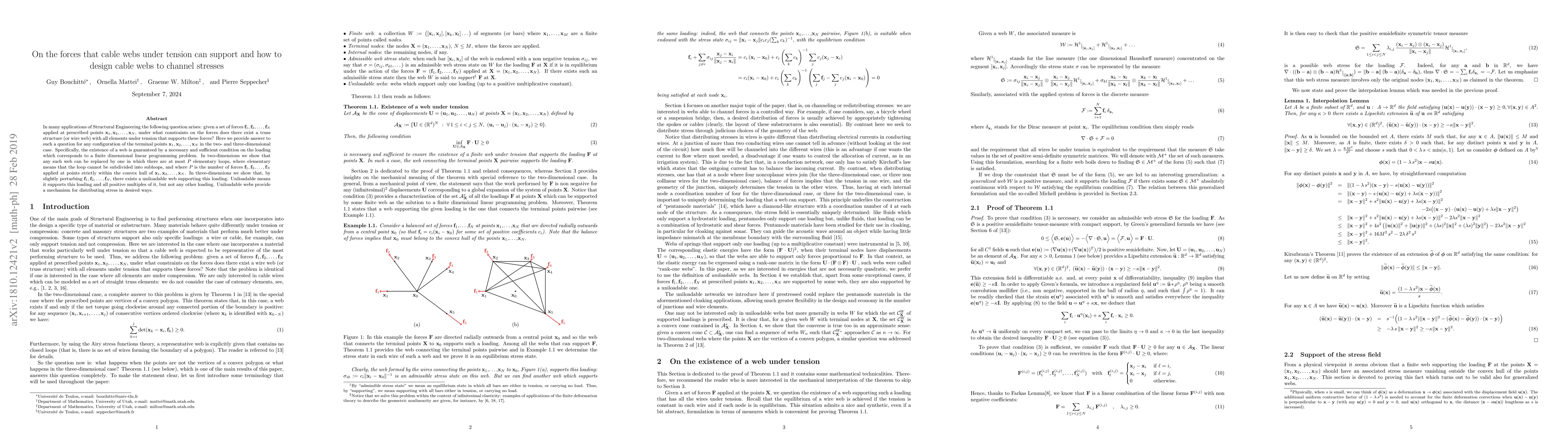 In many applications of Structural Engineering the following question arises: given a set of forces $\mathbf{f}_1,\mathbf{f}_2,\dots,\mathbf{f}_N$ applied at prescribed points $\mathbf{x}_1,\mathbf{x}_2,\dots,\mathbf{x}_N$, under what constraints on the forces does there exist a truss structure (or wire web) with all elements under tension that supports these forces? Here we provide answer to such a question for any configuration of the terminal points $\mathbf{x}_1,\mathbf{x}_2,\dots,\mathbf{x}_N$ in the two- and three-dimensional case. Specifically, the existence of a web is guaranteed by a necessary and sufficient condition on the loading which corresponds to a finite dimensional linear programming problem. In two-dimensions we show that any such web can be replaced by one in which there are at most $P$ elementary loops, where elementary means the loop cannot be subdivided into subloops, and where $P$ is the number of forces $\mathbf{f}_1,\mathbf{f}_2,\dots,\mathbf{f}_N$ applied at points strictly within the convex hull of $\mathbf{x}_1,\mathbf{x}_2,\dots,\mathbf{x}_N$. In three-dimensions we show that, by slightly perturbing $\mathbf{f}_1,\mathbf{f}_2,\dots,\mathbf{f}_N$, there exists a uniloadable web supporting this loading. Uniloadable means it supports this loading and all positive multiples of it, but not any other loading. Uniloadable webs provide a mechanism for distributing stress in desired ways.