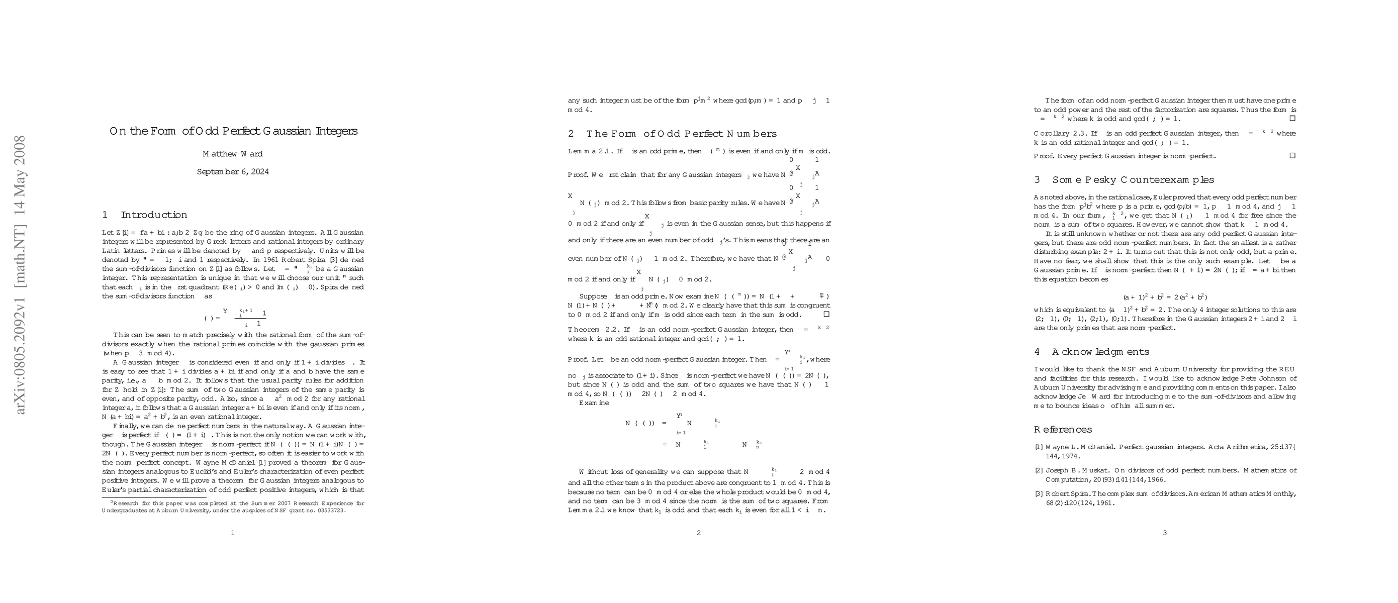 Summary: This paper extends the sum-of-divisors function to Gaussian integers and proves a new classification of odd perfect numbers, building on Euler's original work.