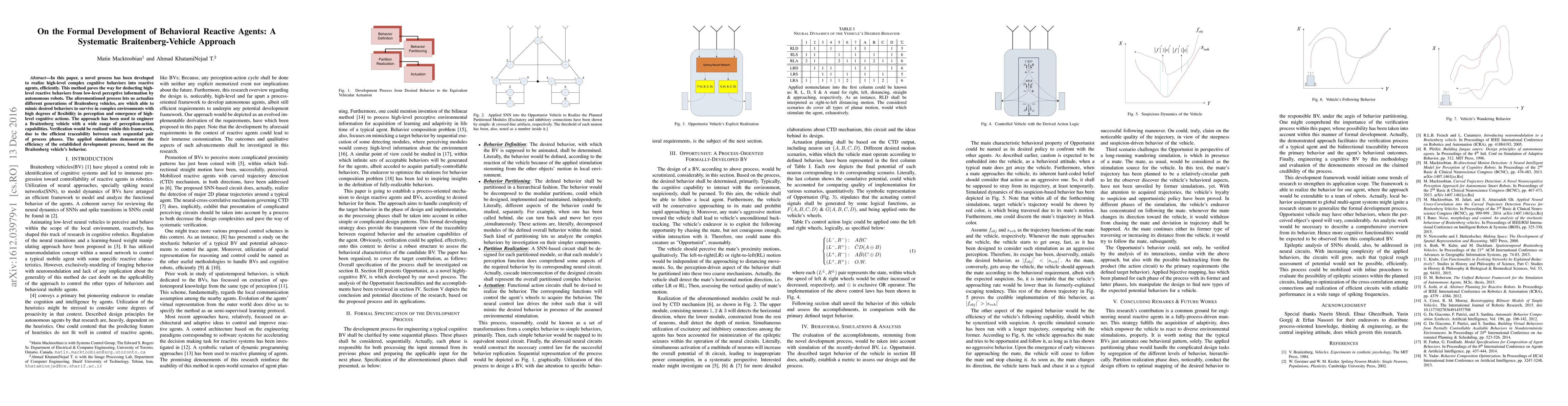 In this paper, a novel process has been developed to realize high-level complex cognitive behaviors into reactive agents, efficiently. This method paves the way for deducting high-level reactive behaviors from low-level perceptive information by autonomous robots. The aforementioned process lets us actualize different generations of Braitenberg vehicles, are which able to mimic desired behaviors to survive in complex environments with high degrees of flexibility in perception and emergence of high-level cognitive actions. The approach has been used to engineer a Braitenberg vehicle with a wide range of perception-action capabilities. Verification would be realized within this framework, due to the efficient traceability between each sequential pair of process phases. The applied simulations demonstrate the efficiency of the established development process, based on the Braitenberg vehicle's behavior.