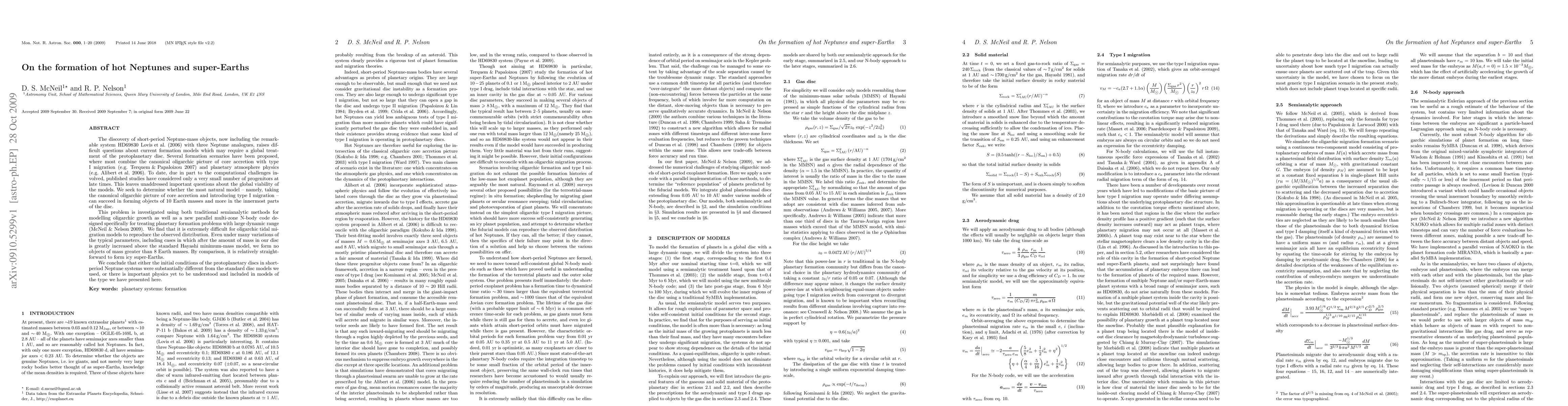 This paper investigates the formation of hot Neptunes and super-Earths using both semianalytic methods and a new parallel N-body code. It finds that traditional core accretion and type I migration models struggle to form objects over 8 Earth masses, suggesting either unusual initial conditions or missing physics in current models.
