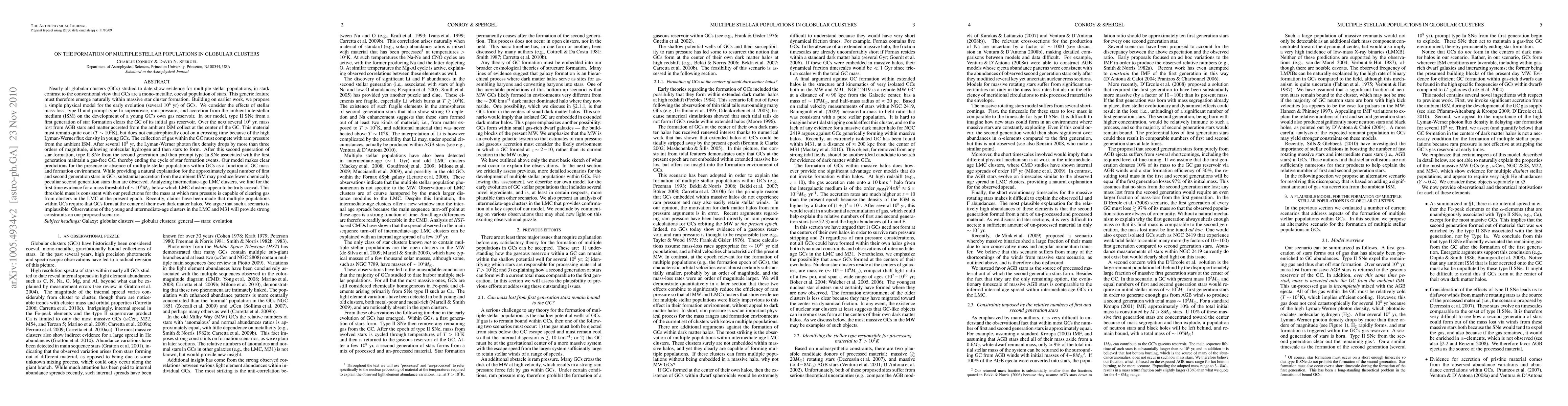 This paper proposes a model for the formation of multiple stellar populations in globular clusters, suggesting that early supernovae and stellar mass-loss clear the initial gas, followed by accretion and cooling of new gas, leading to a second generation of star formation. It predicts a mass threshold (~10^4 Msun) below which clusters may not exhibit multiple populations, consistent with observations of intermediate-age clusters in the Large Magellanic Cloud.