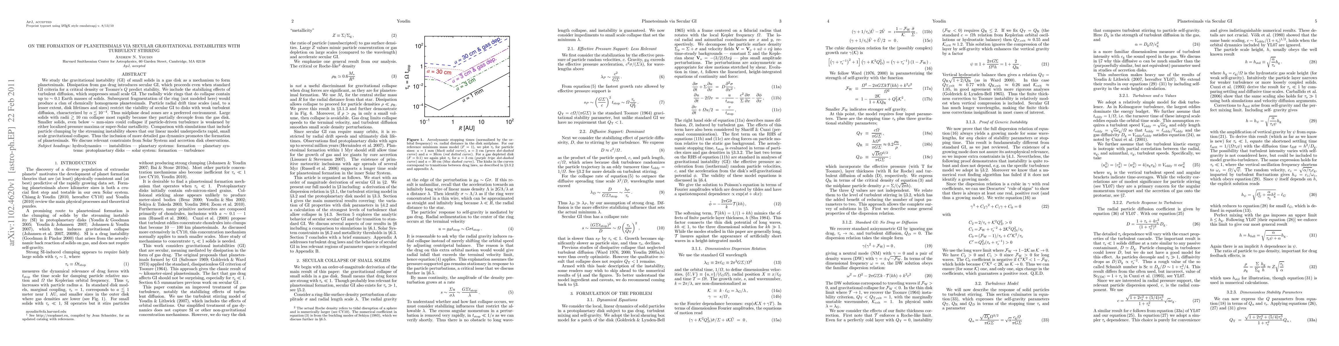 This paper explores the formation of planetesimals through secular gravitational instabilities in gas disks, emphasizing the role of turbulent stirring and gas drag. It finds that planetesimals can form even in stable conditions due to secular gravitational instabilities, with large solids collapsing most rapidly, while smaller particles may also collapse under specific conditions.