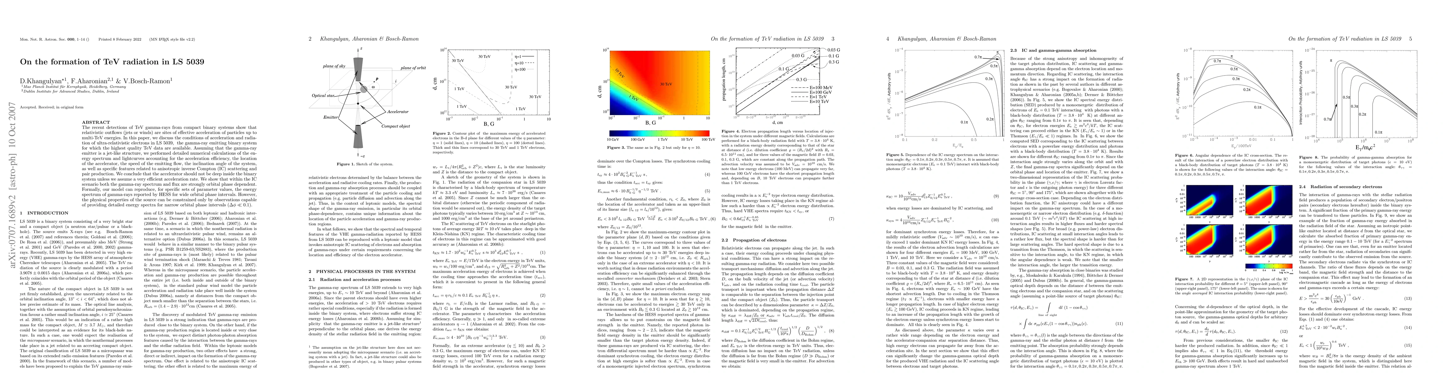 The paper presents a comprehensive model for gamma-ray emission in LS 5039, considering a jet-like structure perpendicular to the orbital plane and acceleration in a compact region located at a fixed distance from the binary system's center.