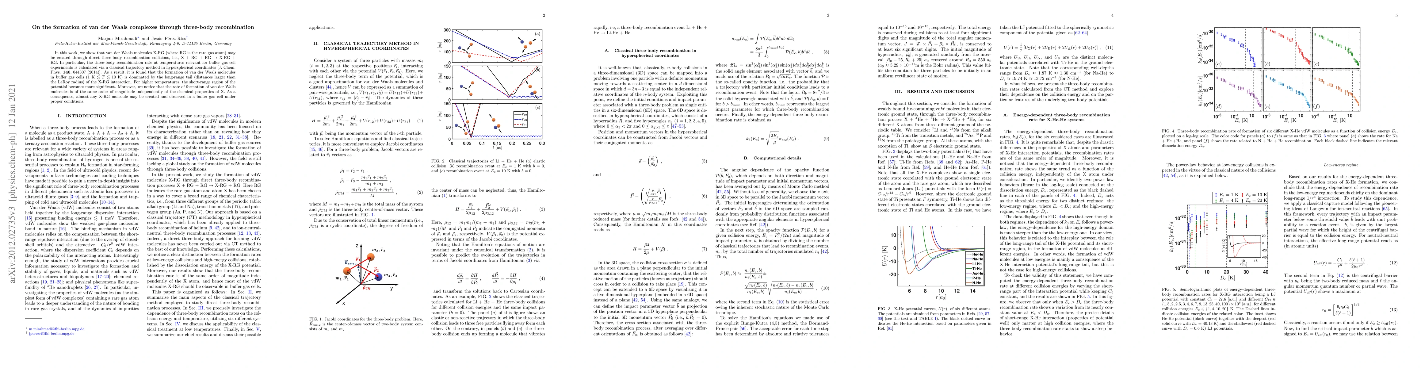 This paper demonstrates that van der Waals molecules X-RG can form via three-body recombination, with the formation rate calculated using a classical trajectory method. The study finds that at low temperatures, long-range interactions dominate the formation process, while higher temperatures involve short-range interactions, and the formation rate is largely independent of the chemical nature of X.