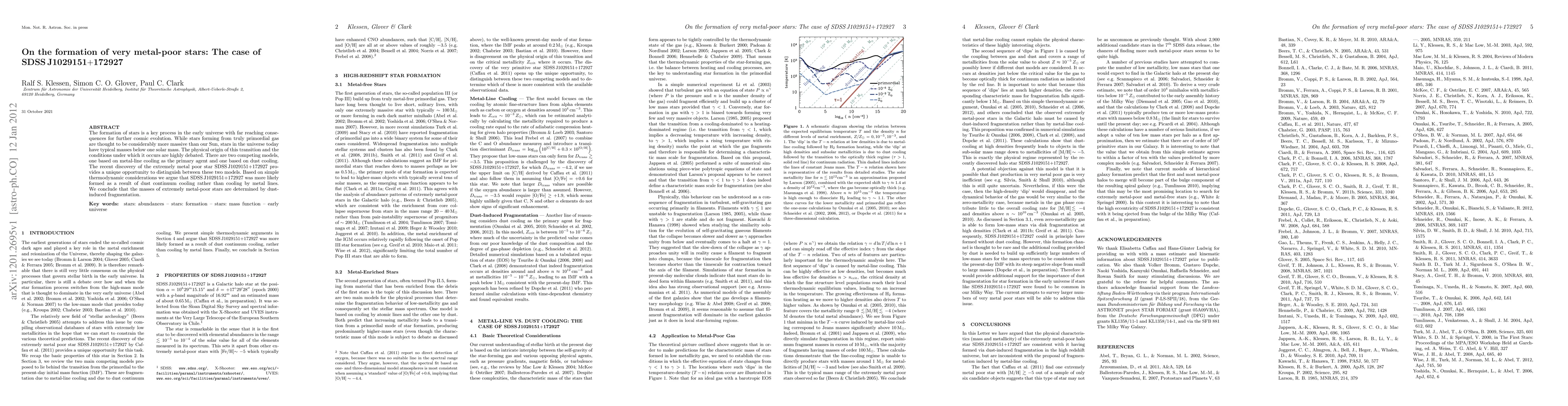The formation of stars is a key process in the early universe with far reaching consequences for further cosmic evolution. While stars forming from truly primordial gas are thought to be considerably more massive than our Sun, stars in the universe today have typical masses below one solar mass. The physical origin of this transition and the conditions under which it occurs are highly debated. There are two competing models, one based on metal-line cooling as the primary agent and one based on dust cooling. The recent discovery of the extremely metal poor star SDSS J1029151+172927 provides a unique opportunity to distinguish between these two models. Based on simple thermodynamic considerations we argue that SDSS J1029151+172927 was more likely formed as a result of dust continuum cooling rather than cooling by metal lines. We conclude that the masses of extremely metal-poor stars are determined by dust-induced fragmentation.