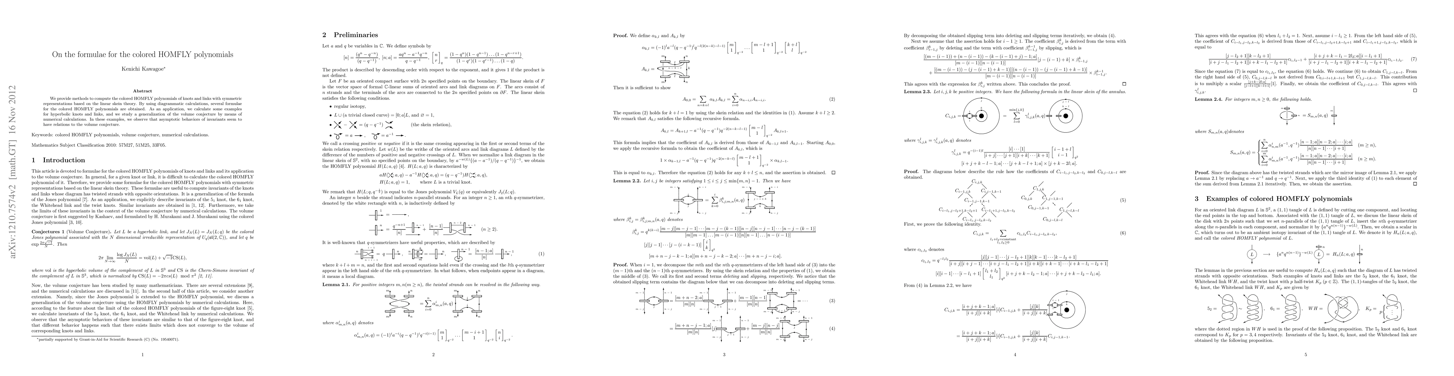 This paper develops methods for computing colored HOMFLY polynomials using linear skein theory and diagrammatic calculations, and applies these methods to hyperbolic knots and links, observing connections to the volume conjecture through numerical analysis.