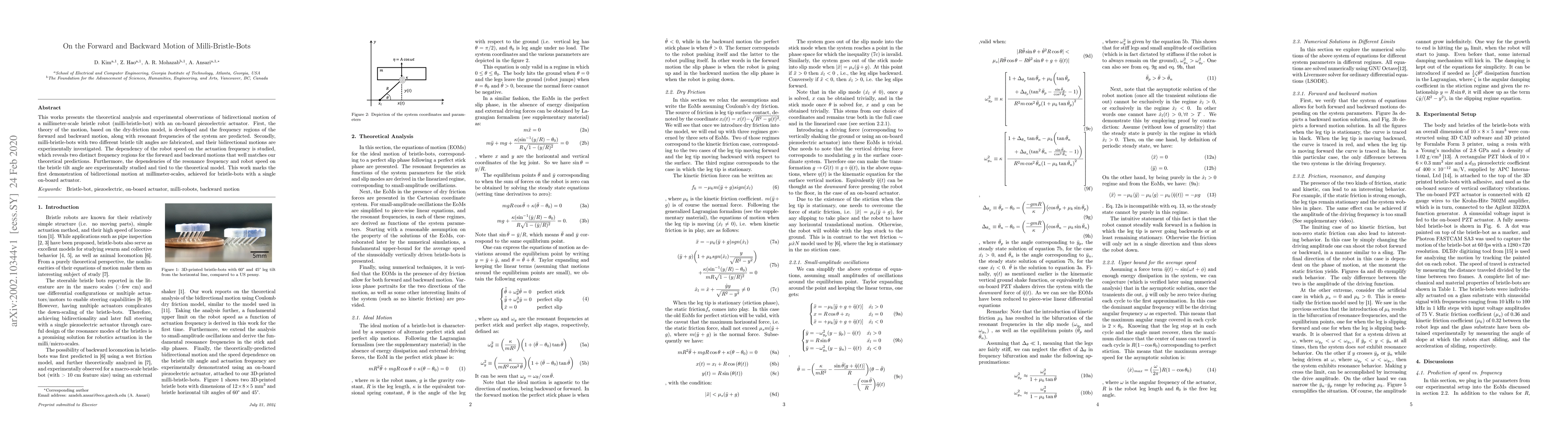 This paper theoretically analyzes and experimentally investigates the bidirectional motion of millimeter-scale bristle robots using a piezoelectric actuator, identifying two distinct frequency regions for forward and backward motion that align with theoretical predictions. The study also examines how bristle tilt angle affects resonance frequency and robot speed, marking the first demonstration of such bidirectional motion at this scale.
