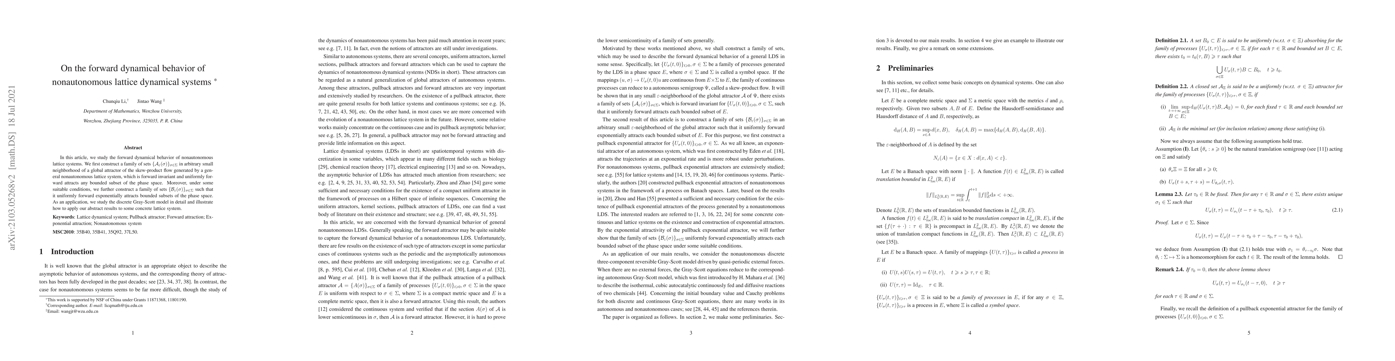 This paper investigates the forward dynamical behavior of nonautonomous lattice systems, constructing families of sets that uniformly forward attract bounded subsets of the phase space. It applies these results to the discrete Gray-Scott model, demonstrating the practical application of the theoretical findings.