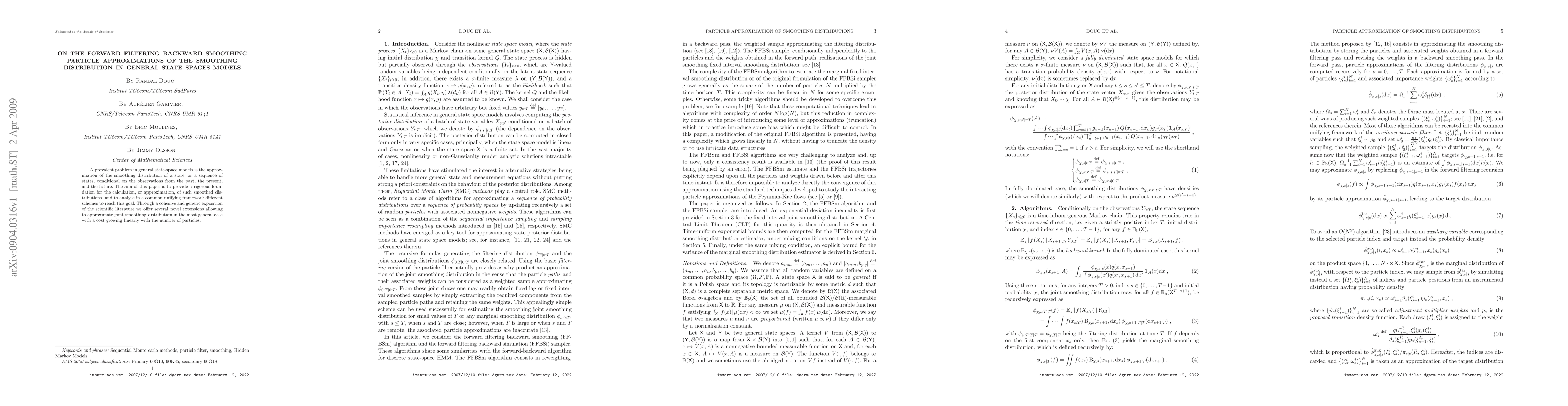 A prevalent problem in general state-space models is the approximation of the smoothing distribution of a state, or a sequence of states, conditional on the observations from the past, the present, and the future. The aim of this paper is to provide a rigorous foundation for the calculation, or approximation, of such smoothed distributions, and to analyse in a common unifying framework different schemes to reach this goal. Through a cohesive and generic exposition of the scientific literature we offer several novel extensions allowing to approximate joint smoothing distribution in the most general case with a cost growing linearly with the number of particles.