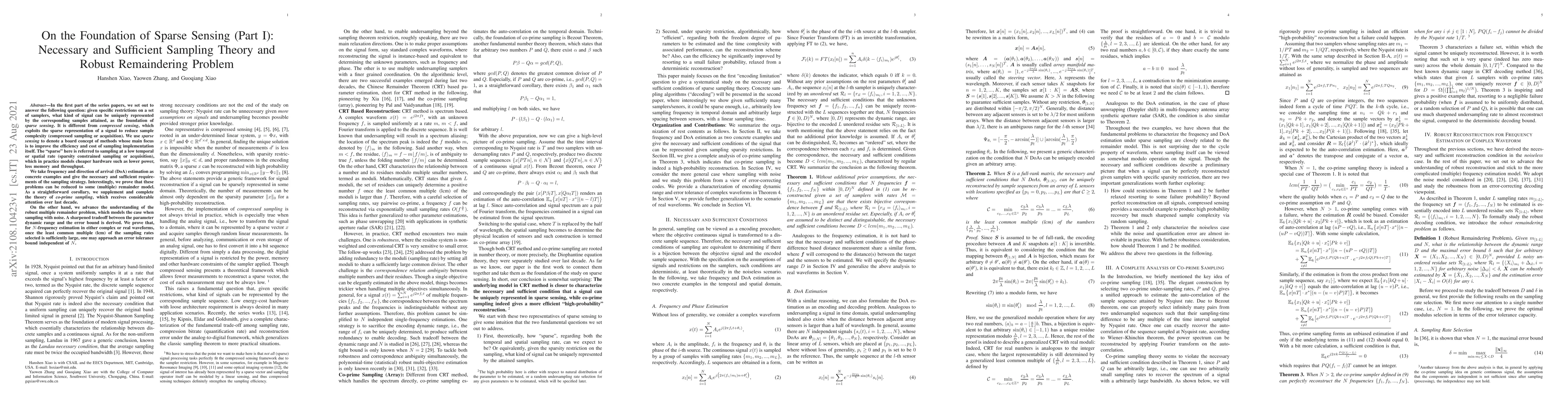 This paper establishes the necessary and sufficient sampling theory for sparse sensing, focusing on frequency and direction of arrival estimation. It introduces a robust remaindering problem framework to model noisy sampling, providing a sharpened tradeoff between dynamic range and error bounds, and completing the theory of co-prime sampling.