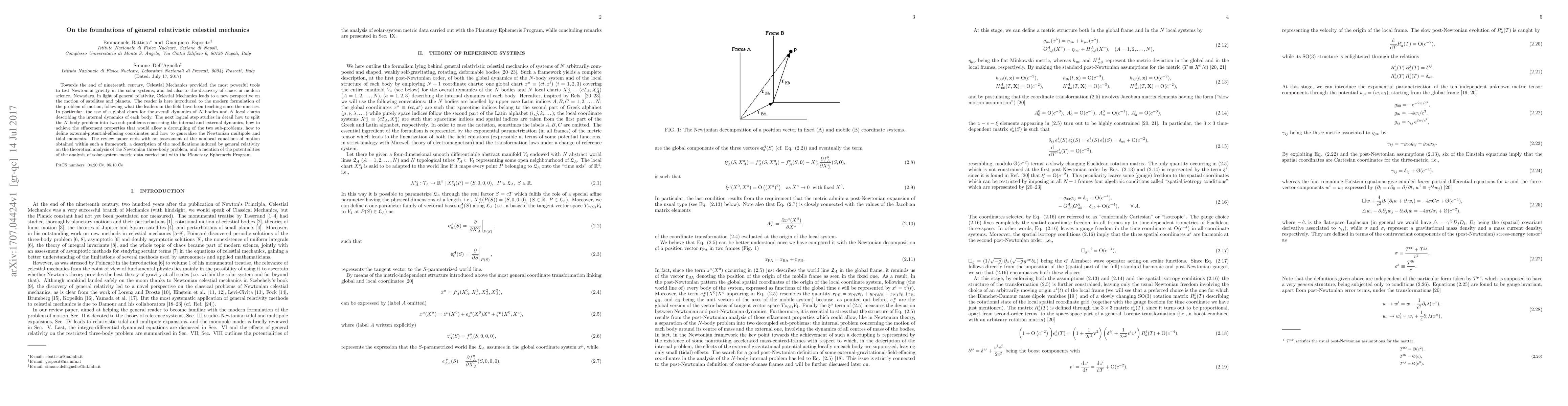 This paper reviews modern celestial mechanics, focusing on how general relativity affects satellite and planet motion, and proposes a framework for splitting the N-body problem into internal and external dynamics.