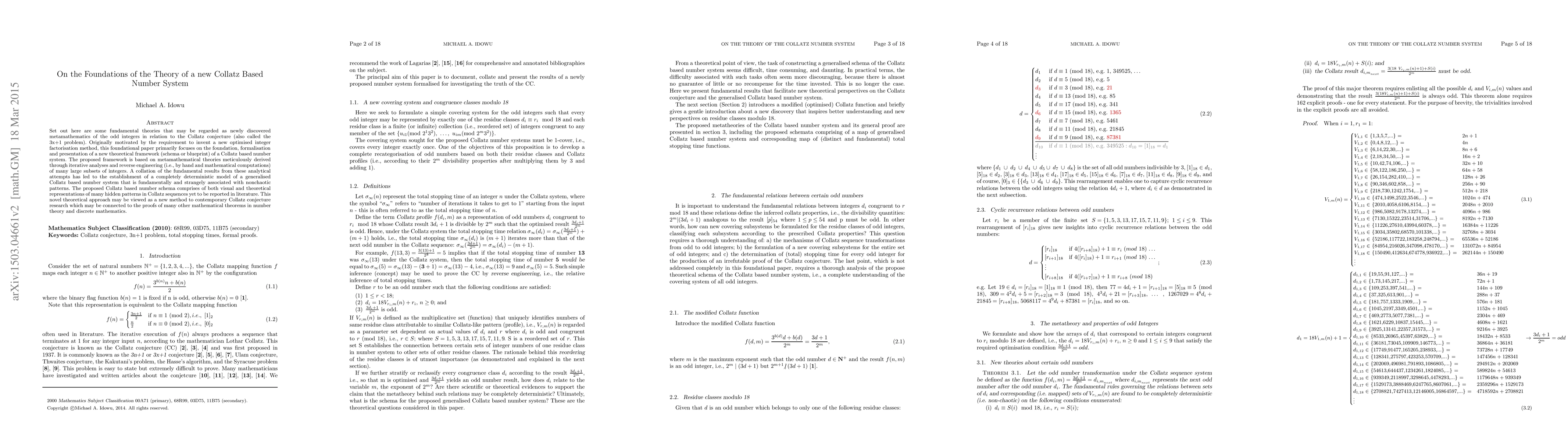 Set out here are some fundamental theories that may be regarded as newly discovered metamathematics of the odd integers in relation to the Collatz conjecture (also called the 3x+1 problem). Originally motivated by the requirement to invent a new optimised integer factorisation method, this foundational paper primarily focuses on the foundation, formalisation and presentation of a new theoretical framework (schema or blueprint) of a Collatz based number system. The proposed framework is based on metamathematical theories meticulously derived through iterative analyses and reverse engineering (i.e., by hand and mathematical computations) of many large subsets of integers. A collation of the fundamental results from these analytical attempts has led to the establishment of a completely deterministic model of a generalised Collatz based number system that is fundamentally and strangely associated with nonchaotic patterns. The proposed Collatz based number schema comprises of both visual and theoretical representations of many hidden patterns in Collatz sequences yet to be reported in literature. This novel theoretical approach may be viewed as a new method to contemporary Collatz conjecture research which may be connected to the proofs of many other mathematical theorems in number theory and discrete mathematics.
