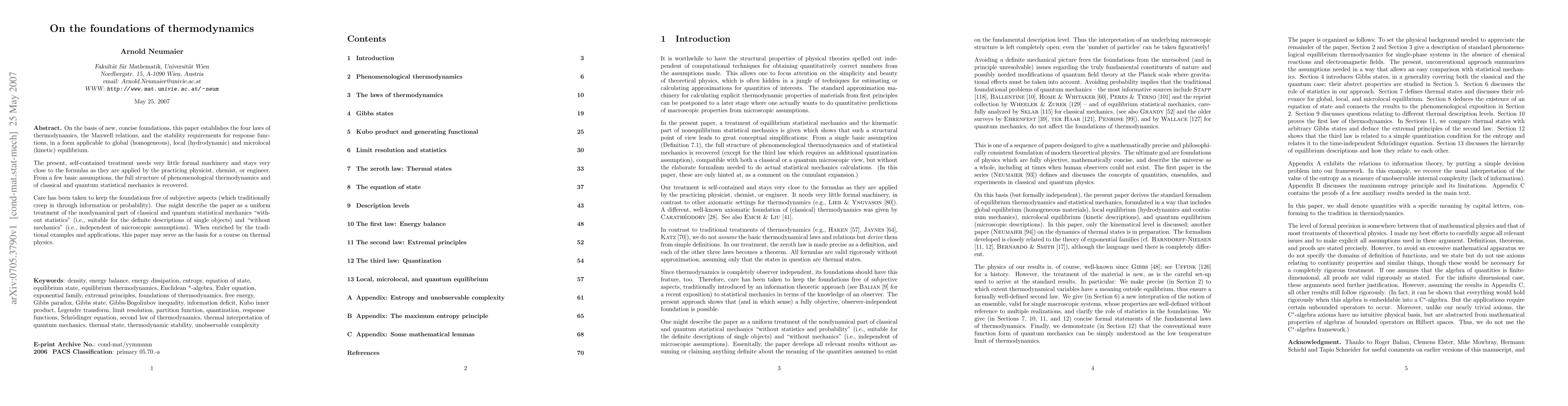 This paper presents a new, minimalist foundation for thermodynamics, establishing the four laws, Maxwell relations, and stability requirements for response functions across global, local, and microlocal equilibrium. It aims to provide a clear, objective framework for phenomenological thermodynamics and statistical mechanics, independent of probabilistic or mechanical assumptions.