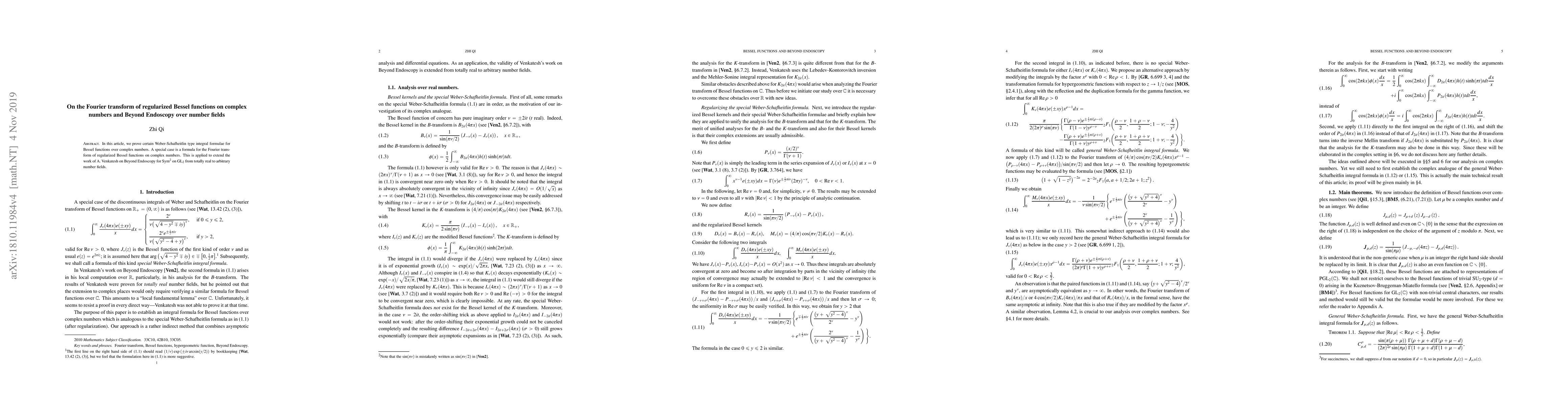 Researchers prove integral formulae for Bessel functions over complex numbers, including a formula for the Fourier transform of regularized Bessel functions, with applications to extending work on Beyond Endoscopy in number fields.