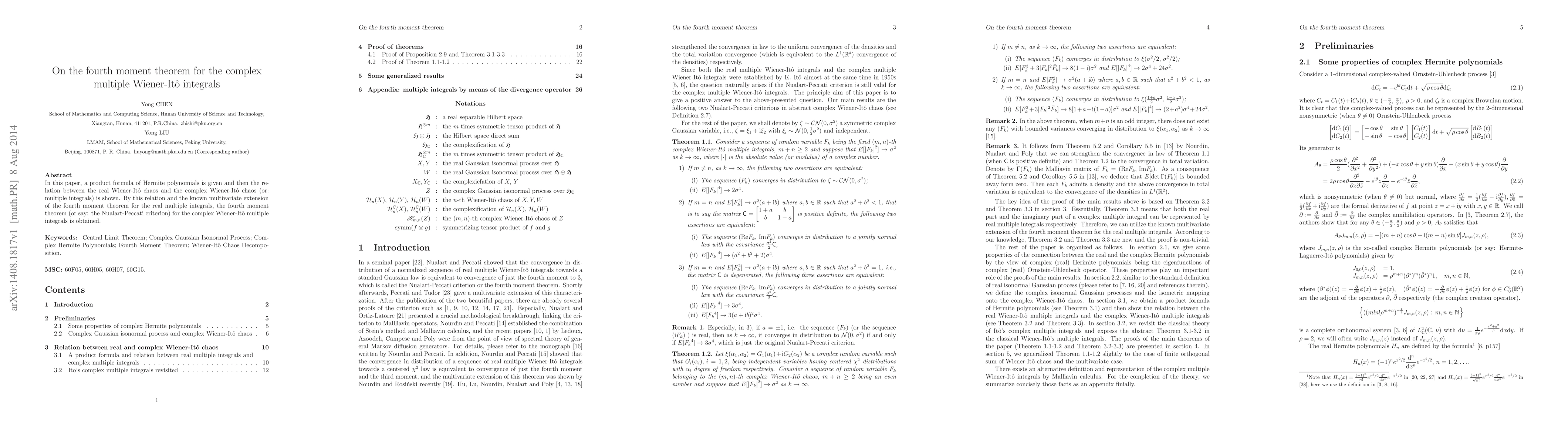This paper establishes a product formula for Hermite polynomials and demonstrates the connection between real and complex Wiener-Itô chaos. It extends the fourth moment theorem for real multiple integrals to complex multiple integrals, thereby obtaining the Nualart-Peccati criterion for the latter.