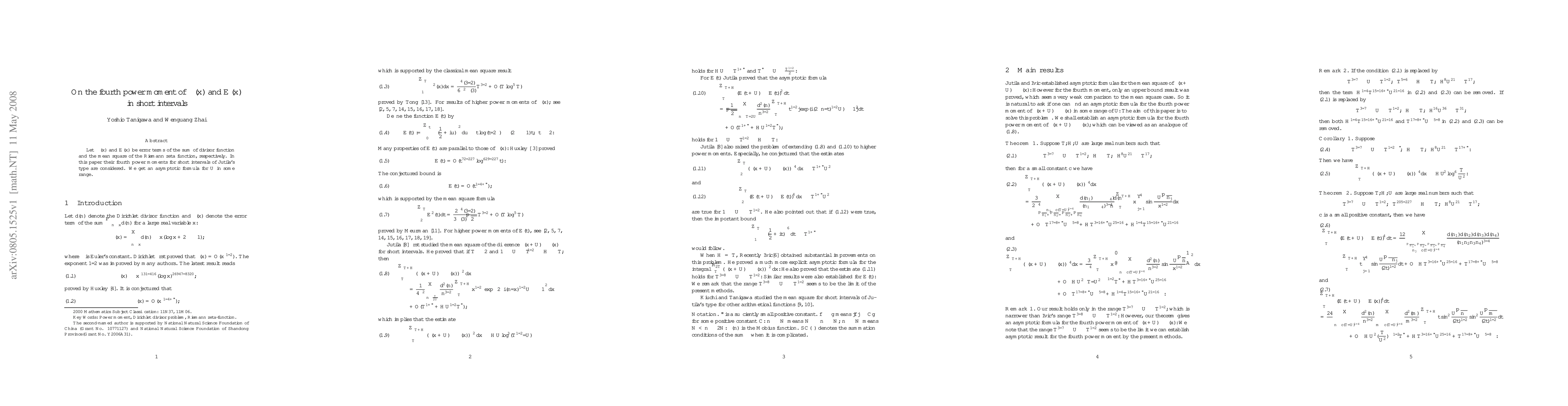 This research paper explores the fourth power moments of error terms in divisor function and Riemann zeta function for short intervals, aiming to derive an asymptotic formula.