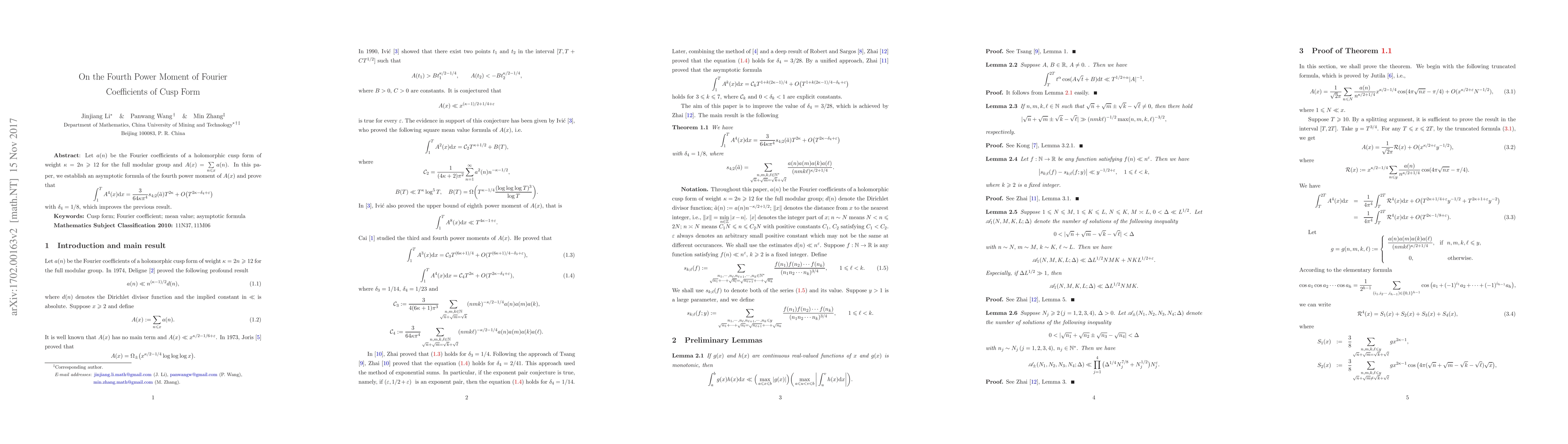 Let $a(n)$ be the Fourier coefficients of a holomorphic cusp form of weight $\kappa=2n\geqslant12$ for the full modular group and $A(x)=\sum\limits_{n\leqslant x}a(n)$. In this paper, we establish an asymptotic formula of the fourth power moment of $A(x)$ and prove that \begin{equation*} \int_1^TA^4(x)\mathrm{d}x=\frac{3}{64\kappa\pi^4}s_{4;2}(\tilde{a}) T^{2\kappa}+O\big(T^{2\kappa-\delta_4+\varepsilon}\big) \end{equation*} with $\delta_4=1/8$, which improves the previous result.