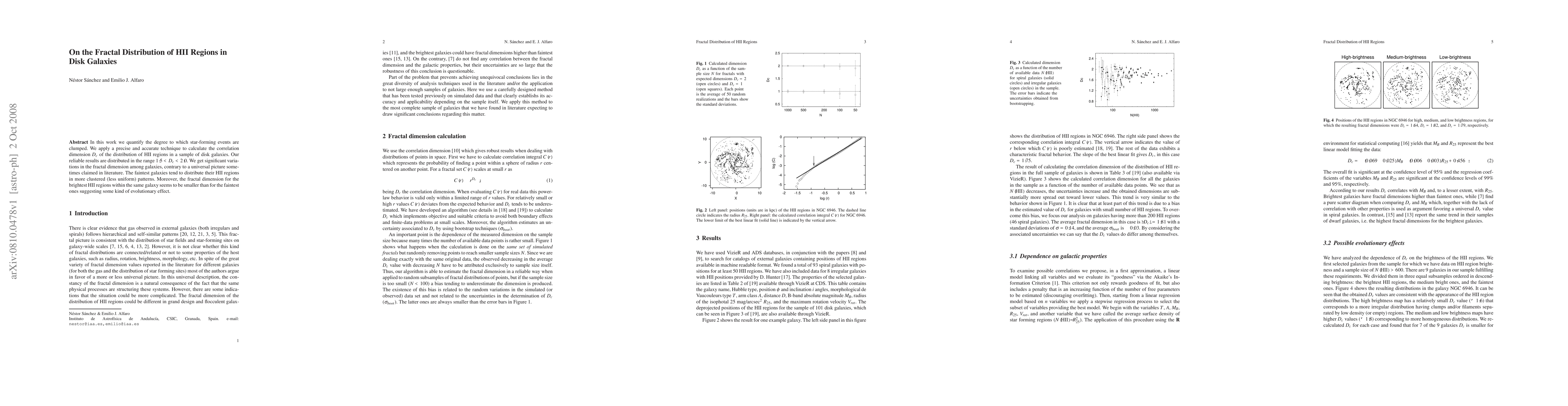 The paper introduces a reliable method for calculating the fractal dimension of HII region distributions in galaxies, using a correlation integral and an algorithm that addresses boundary effects and finite-data issues.