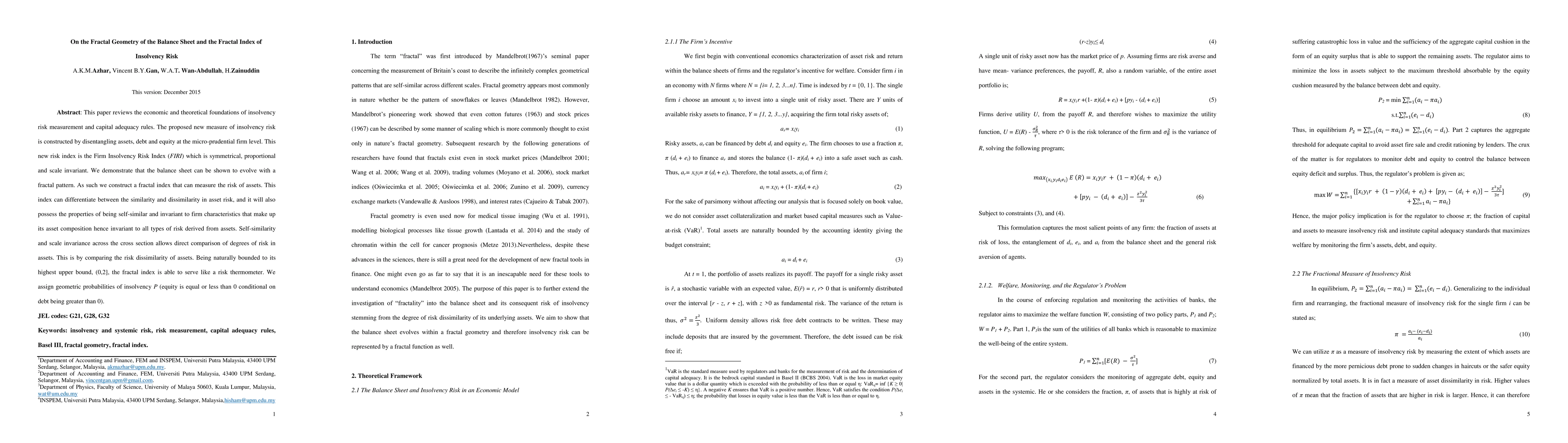 This paper reviews the economic and theoretical foundations of insolvency risk measurement and capital adequacy rules. The proposed new measure of insolvency risk is constructed by disentangling assets, debt and equity at the micro-prudential firm level. This new risk index is the Firm Insolvency Risk Index (FIRI) which is symmetrical, proportional and scale invariant. We demonstrate that the balance sheet can be shown to evolve with a fractal pattern. As such we construct a fractal index that can measure the risk of assets. This index can differentiate between the similarity and dissimilarity in asset risk, and it will also possess the properties of being self-similar and invariant to firm characteristics that make up its asset composition hence invariant to all types of risk derived from assets. Self-similarity and scale invariance across the cross section allows direct comparison of degrees of risk in assets. This is by comparing the risk dissimilarity of assets. Being naturally bounded to its highest upper bound, (0,2], the fractal index is able to serve like a risk thermometer. We assign geometric probabilities of insolvency P (equity is equal or less than 0 conditional on debt being greater than 0).