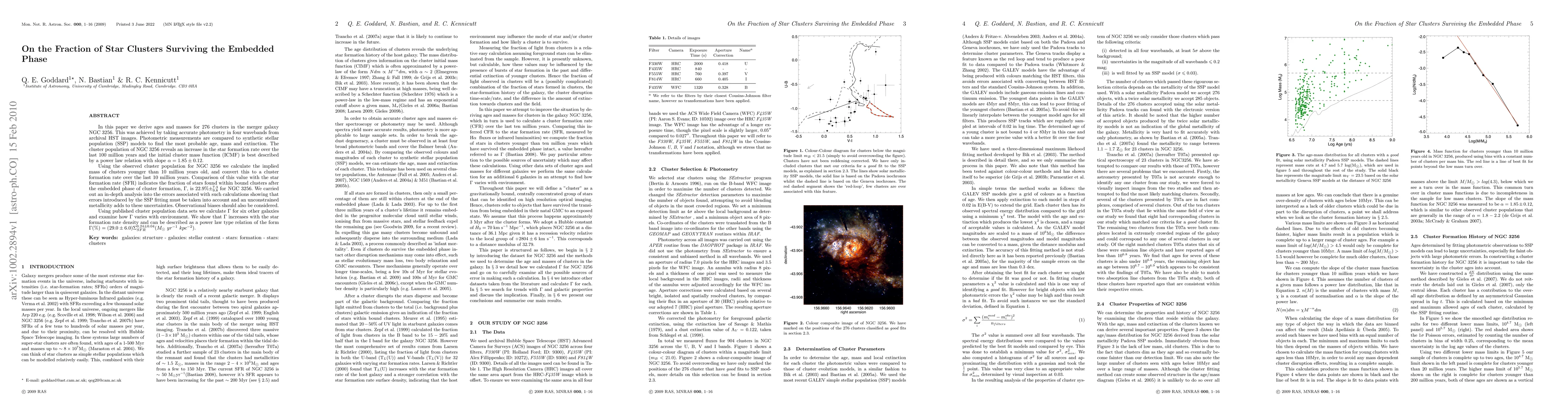 In this paper we derive ages and masses for 276 clusters in the merger galaxy NGC 3256. This was achieved by taking accurate photometry in four wavebands from archival HST images. Photometric measurements are compared to synthetic stellar population (SSP) models to find the most probable age, mass and extinction. The cluster population of NGC 3256 reveals an increase in the star formation rate over the last 100 million years and the initial cluster mass function (ICMF) is best described by a power law relation with slope $\alpha = 1.85 \pm 0.12$. Using the observed cluster population for NGC 3256 we calculate the implied mass of clusters younger than 10 million years old, and convert this to a cluster formation rate over the last 10 million years. Comparison of this value with the star formation rate (SFR) indicates the fraction of stars found within bound clusters after the embedded phase of cluster formation, $\Gamma$, is $22.9% \pm^{7.3}_{9.8} $ for NGC 3256. We carried out an in-depth analysis into the errors associated with such calculations showing that errors introduced by the SSP fitting must be taken into account and an unconstrained metallicity adds to these uncertainties. Observational biases should also be considered. Using published cluster population data sets we calculate $\Gamma$ for six other galaxies and examine how $\Gamma$ varies with environment. We show that $\Gamma$ increases with the star formation rate density and can be described as a power law type relation of the form $\Gamma(%) = (29.0\pm{6.0}) \Sigma_{SFR}^{0.24\pm0.04} (\msol yr^{-1} kpc^{-2})$.