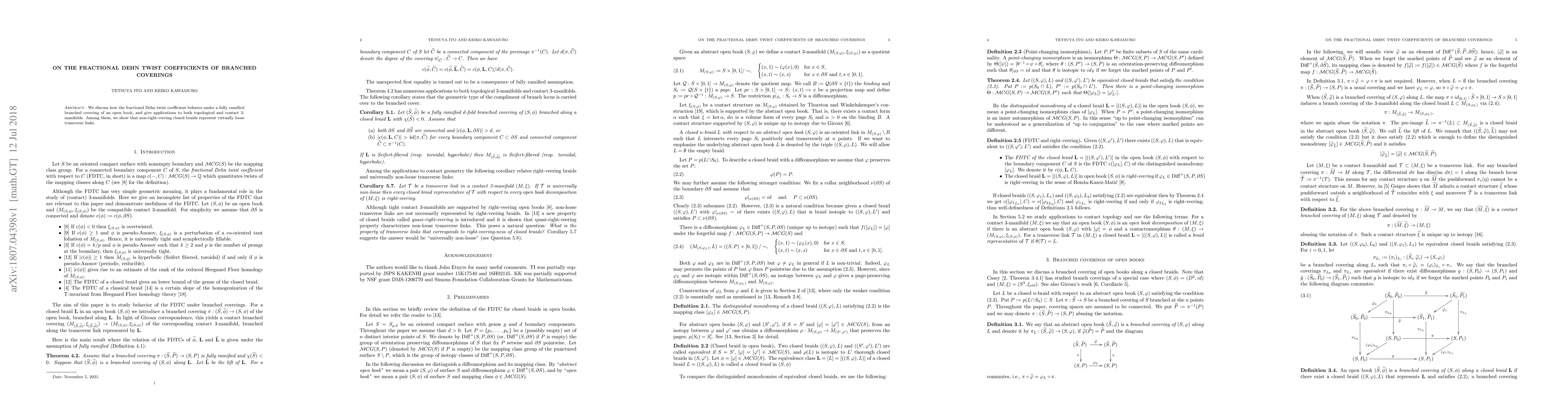 Summary: This paper explores the behavior of fractional Dehn twist coefficients under fully ramified branched coverings of open books, applying the results to topological and contact 3-manifolds, and demonstrates that non-right-veering closed braids correspond to virtually loose transverse links.