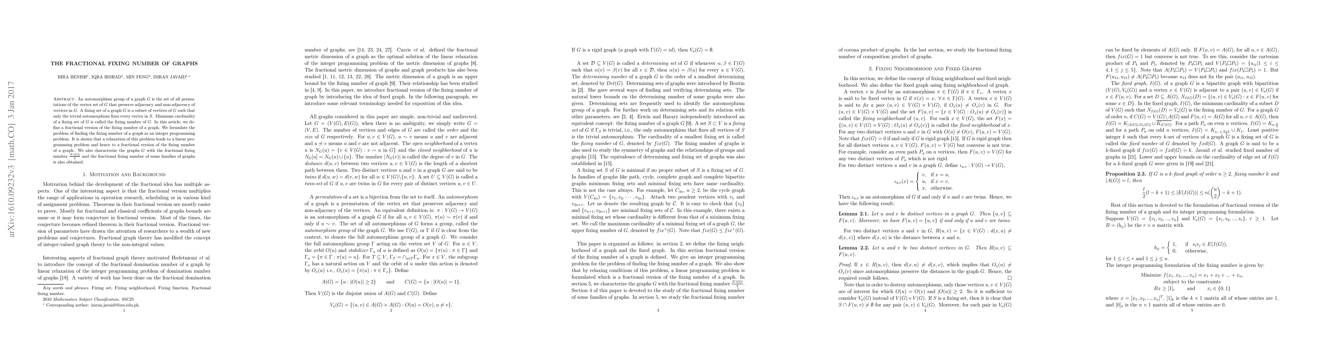 This paper introduces the fractional fixing number of a graph, a relaxation of the traditional fixing number concept. It formulates the fixing set problem as an integer programming task, then derives a linear programming equivalent for the fractional fixing number. The research identifies graphs with a fractional fixing number of rac{|V(G)|}{2} and determines the fractional fixing numbers for certain graph families.